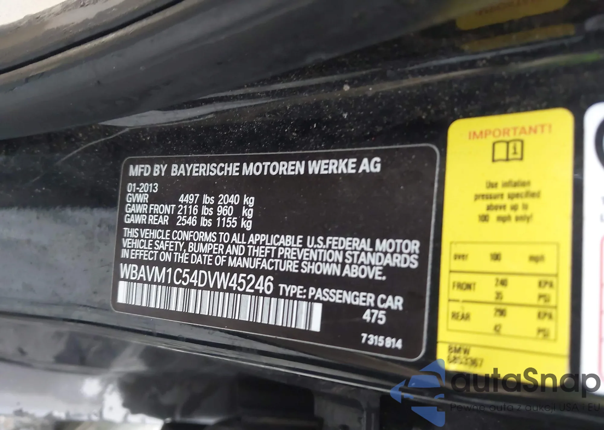 • VIN WBAVM1C54DVW45246