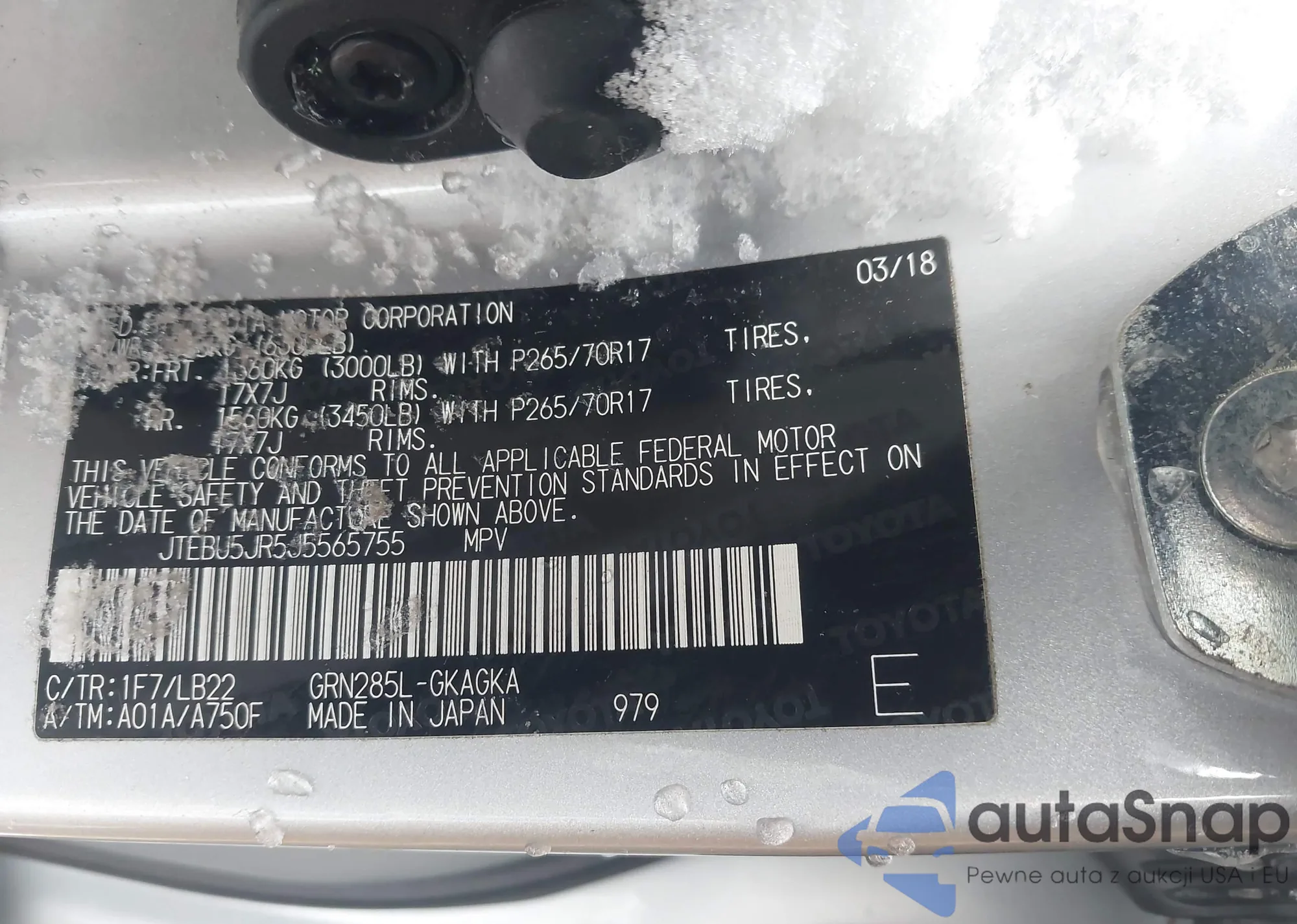 LOT: 43844880 VIN: JTEBU5JR5J5565755