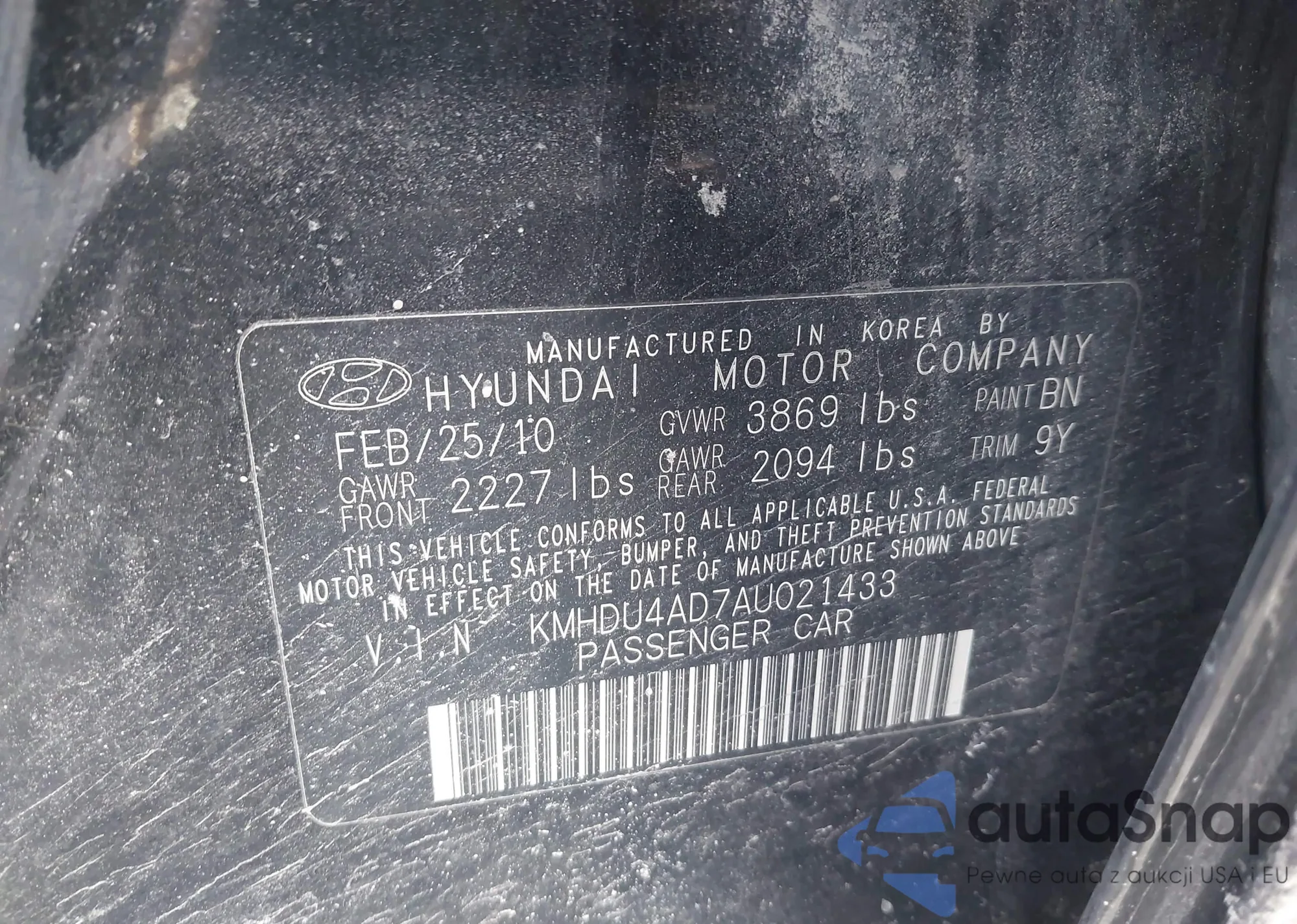 • VIN 5FNYF4H94BB097509