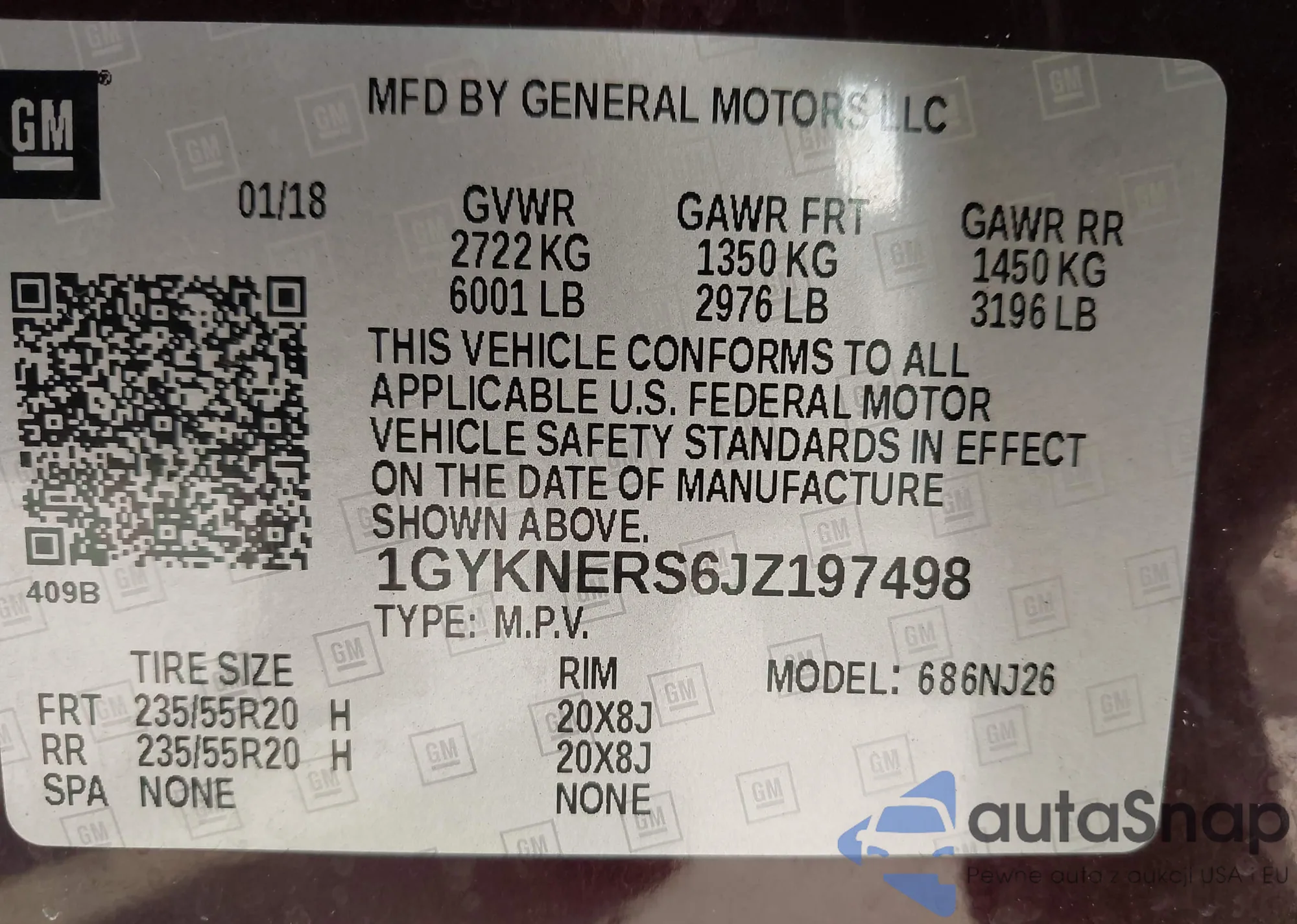 LOT: 43868029 VIN: 1GYKNERS6JZ197498