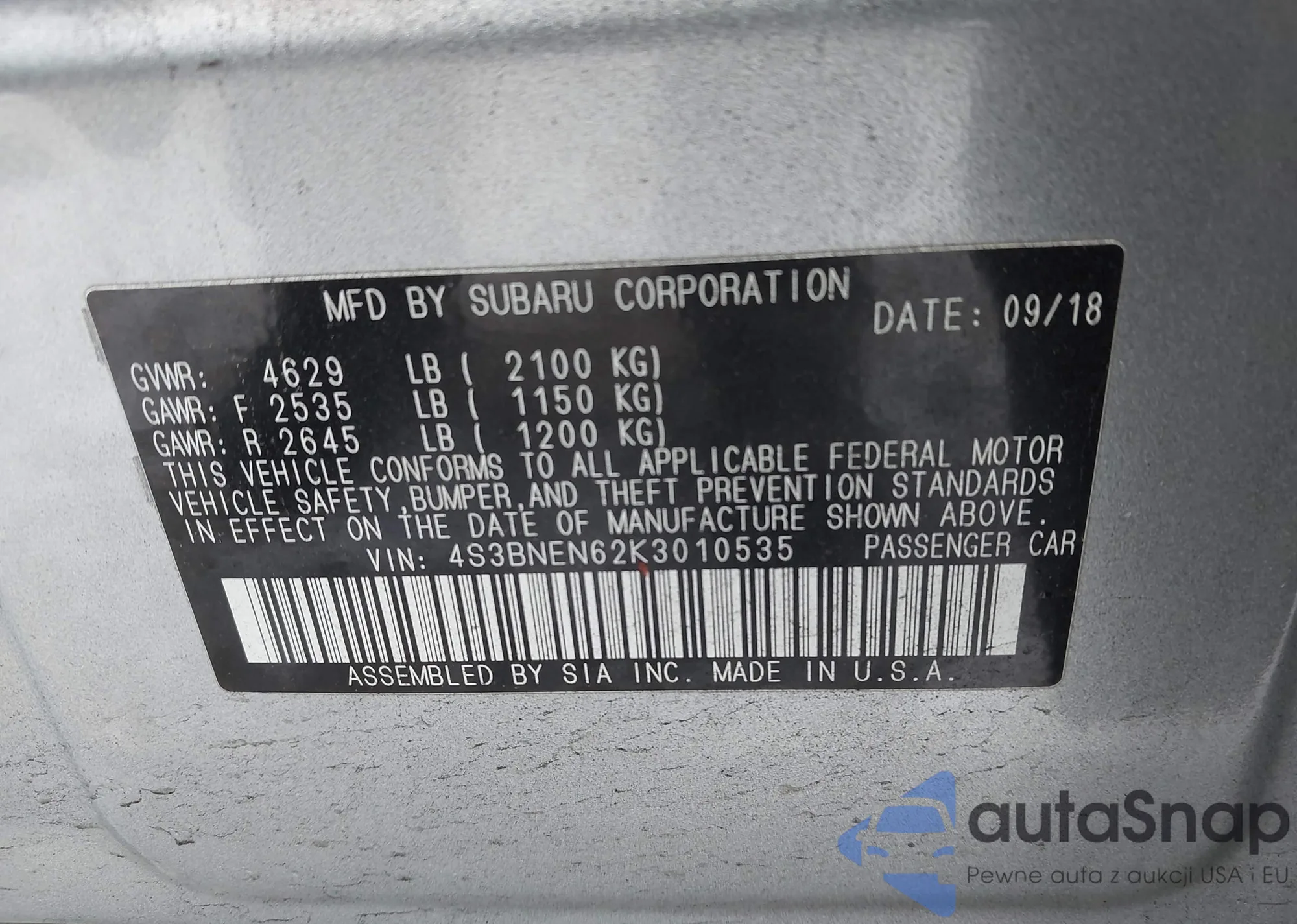 • VIN 4S3GKAV61M3603653