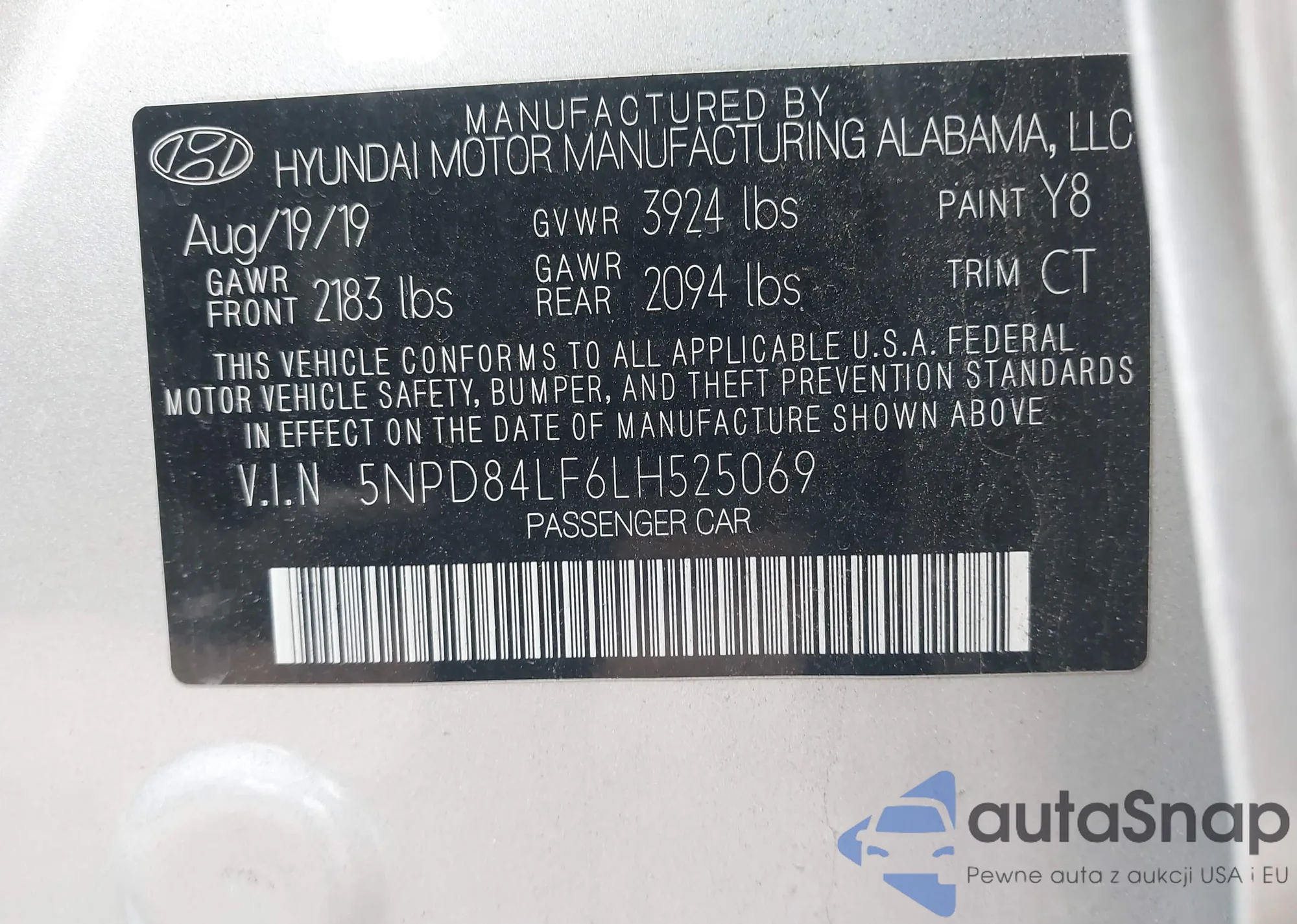 • VIN 5NPD84LF6LH525069