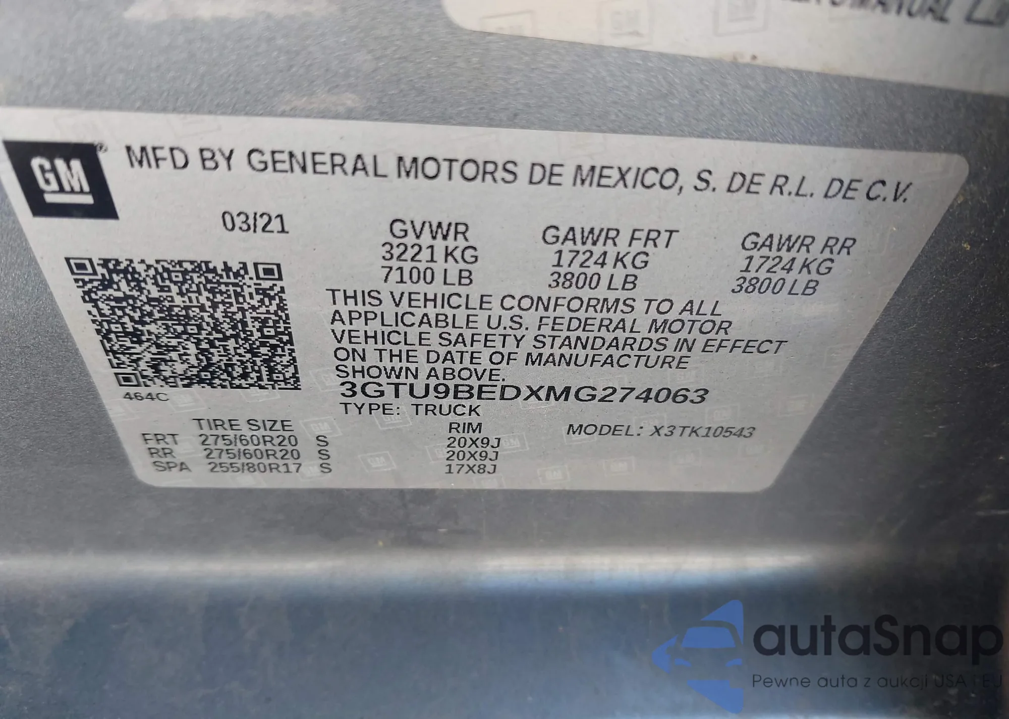 • VIN 3GTU9BEDXMG274063