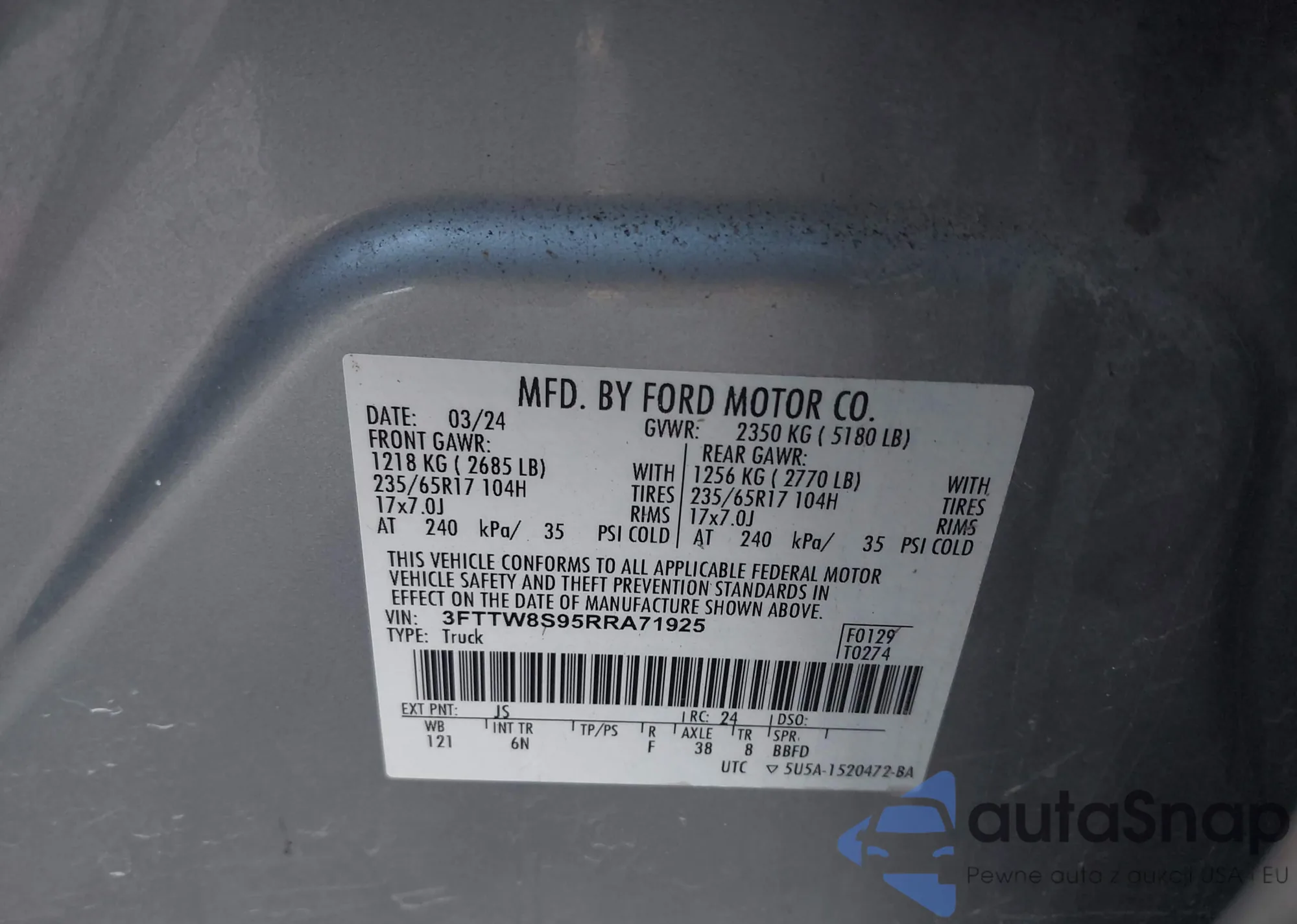 • VIN 3FTTW8S95RRA71925