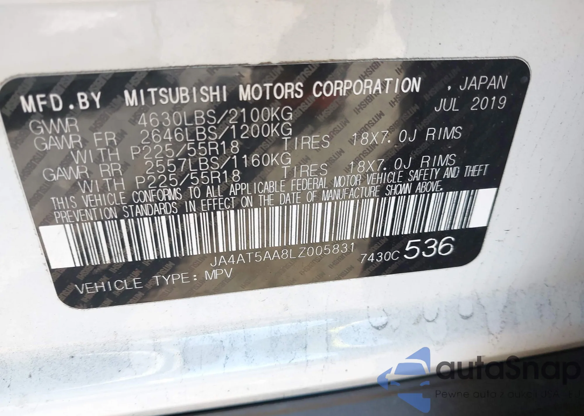 LOT: 43574605 VIN: JA4AT5AA8LZ005831