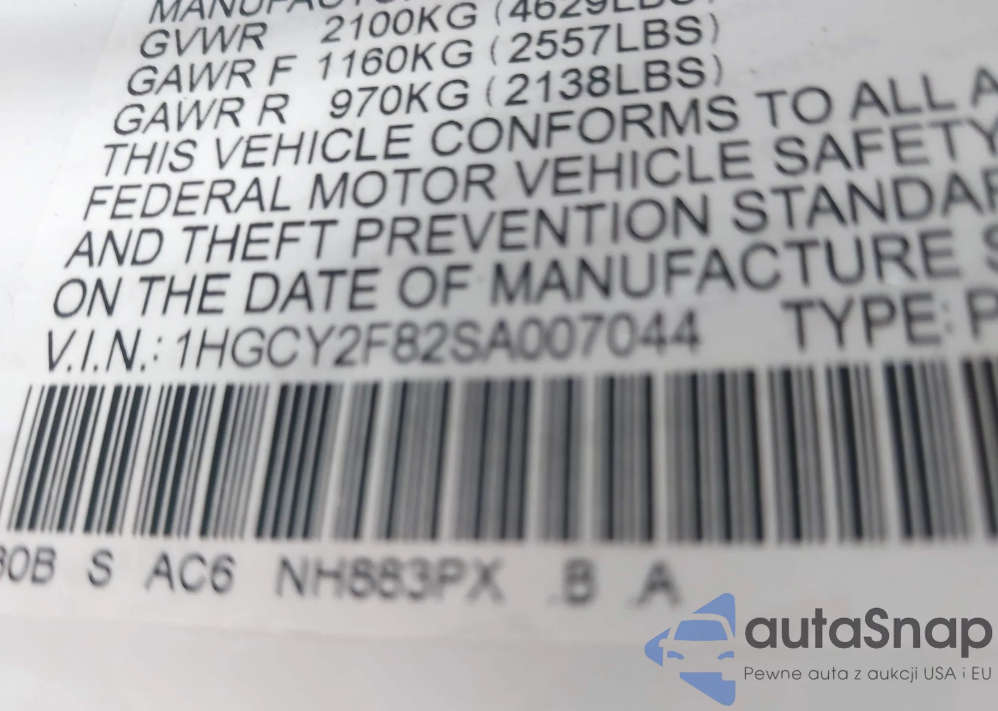• VIN 1HGCY2F82SA007044