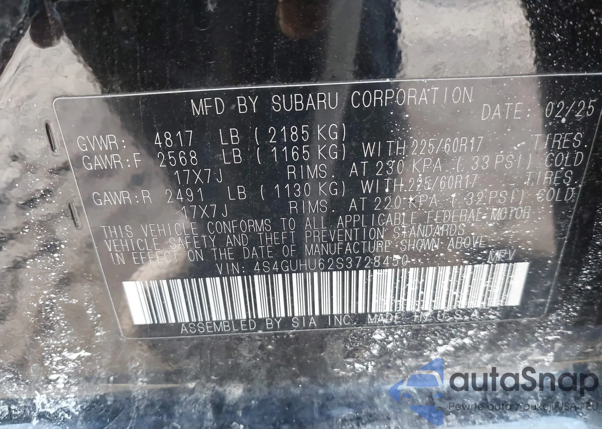 • VIN 4S4GUHU62S3728450
