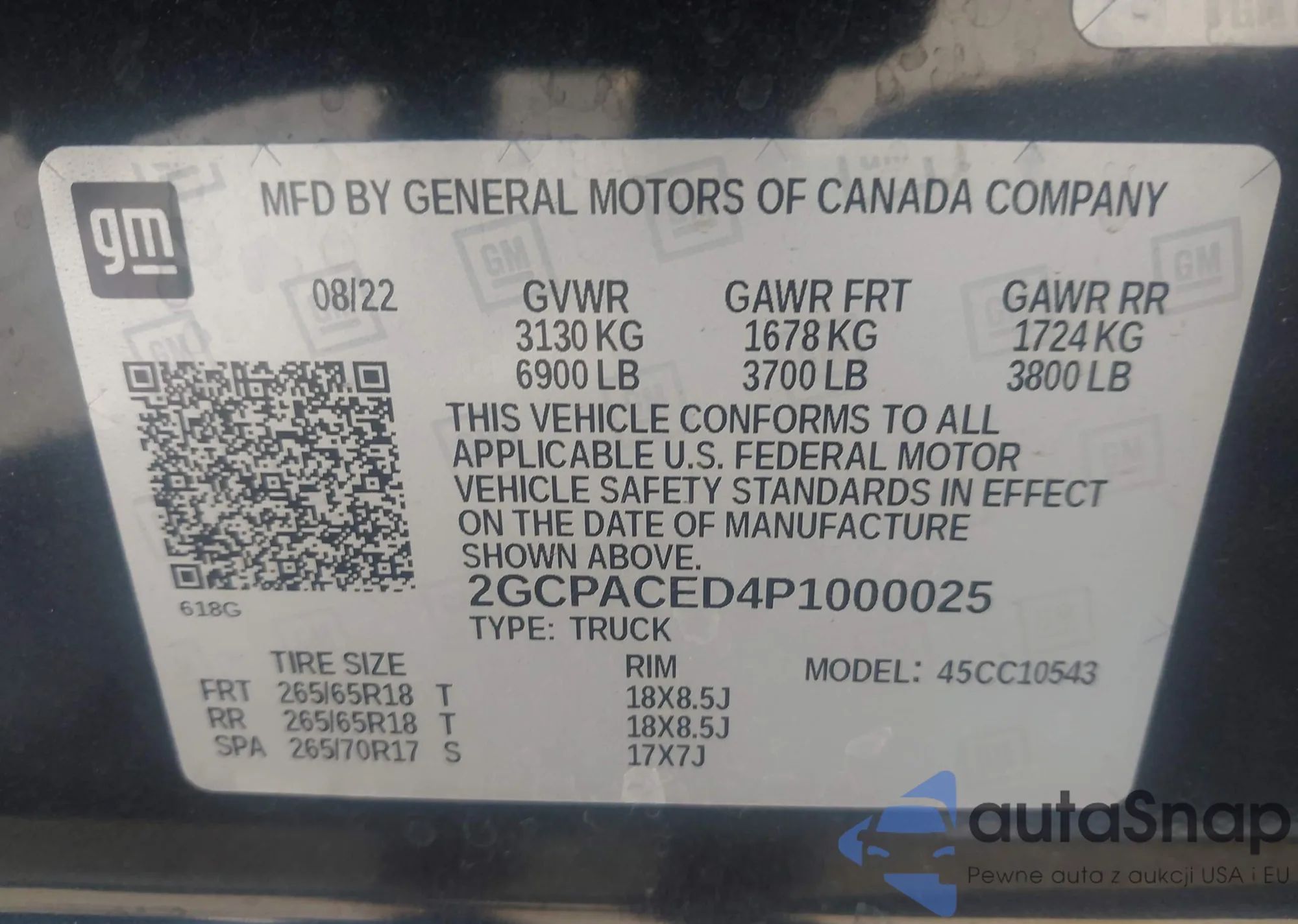 • VIN 2GCPACED4P1000025