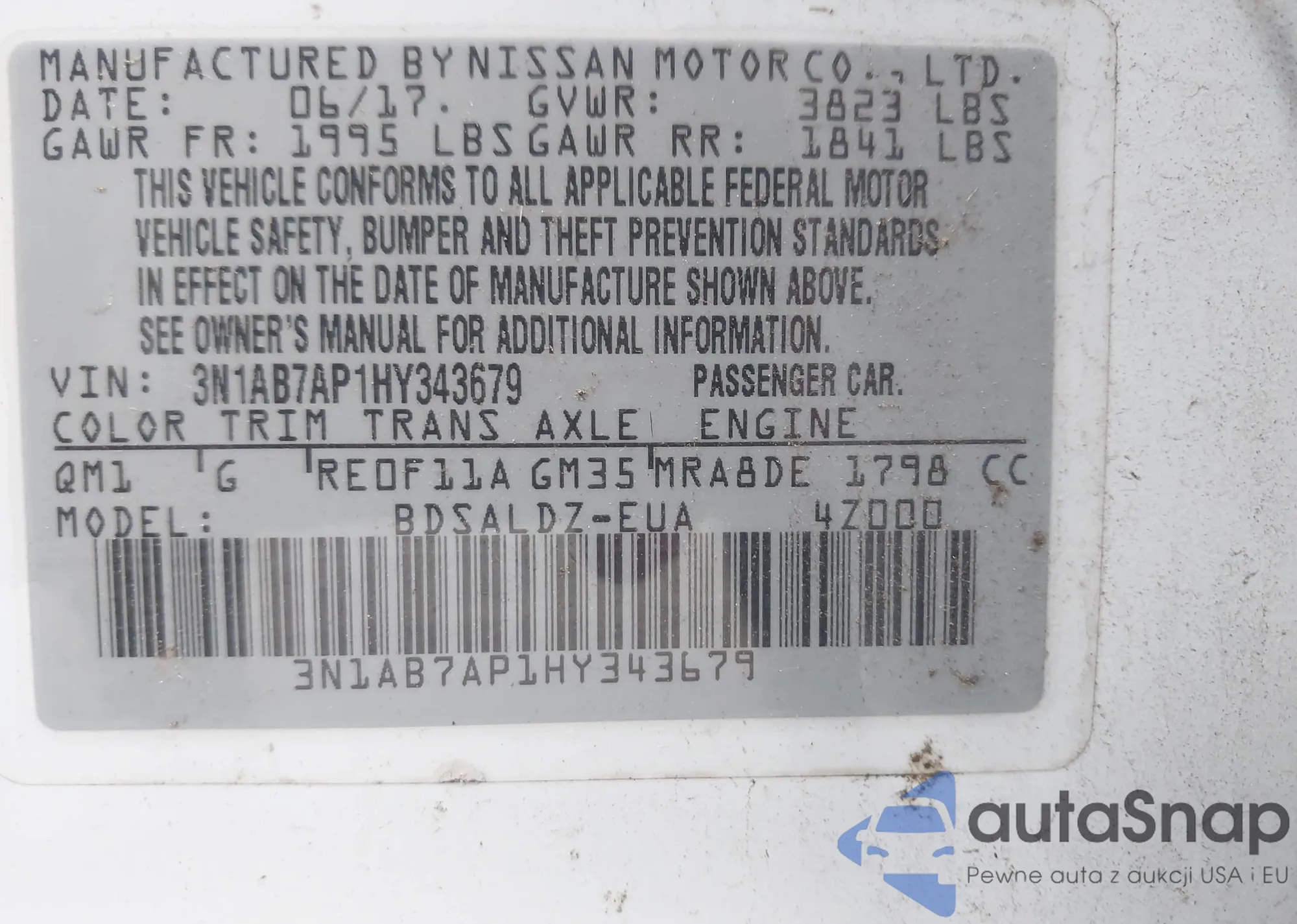 • VIN 3N1AB7AP1HY343679