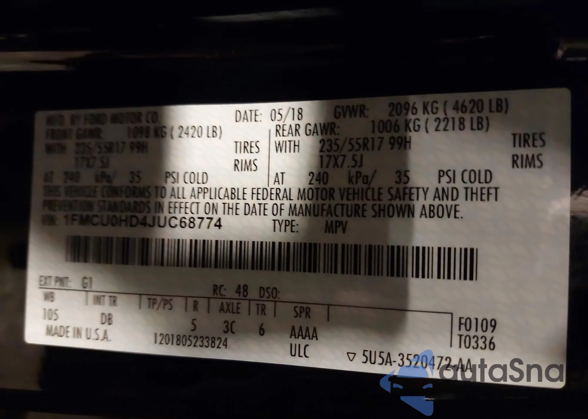 • VIN 1FMCU0HD4JUC68774