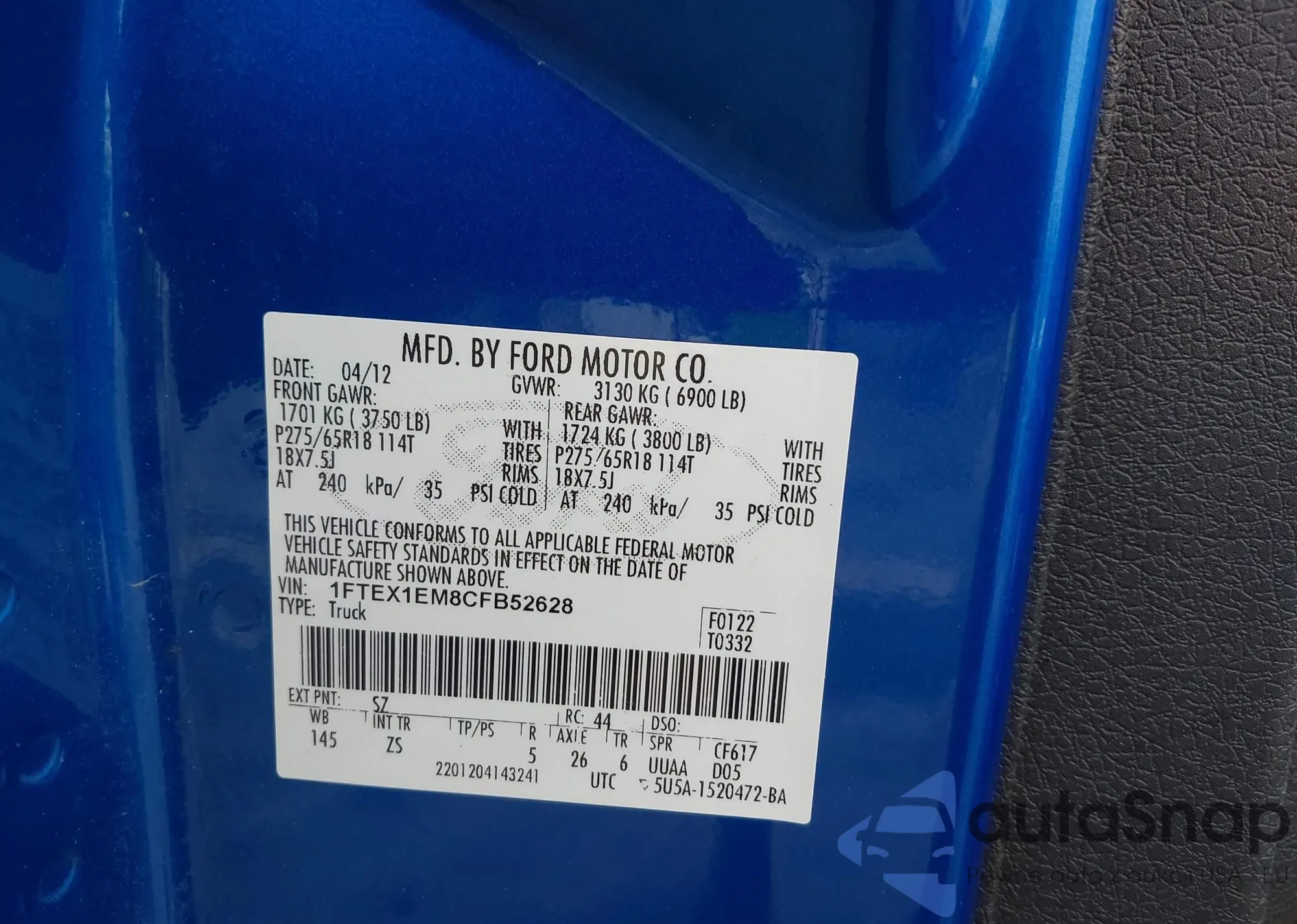 LOT: 43950006 VIN: 1FTEX1EM8CFB52628