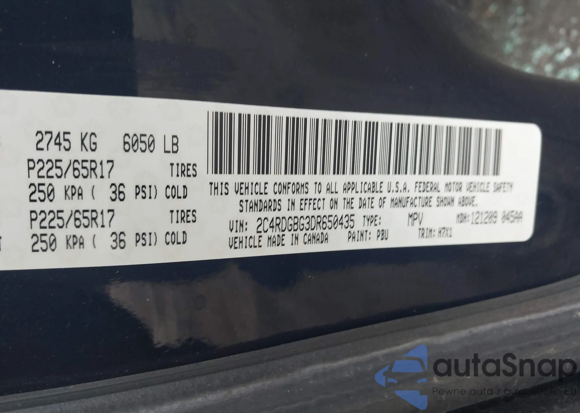 • VIN 2C4RDGBG3DR650435