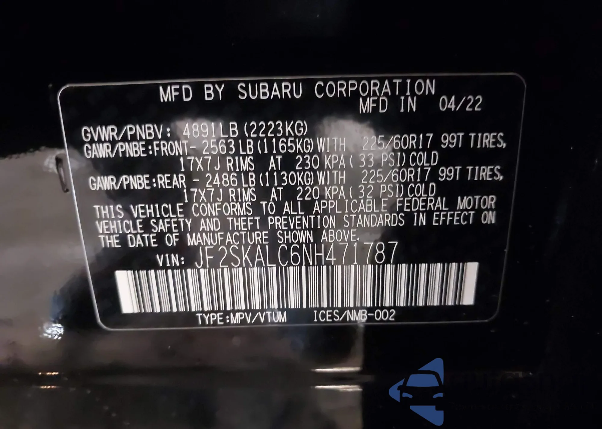 • VIN JF2SKALC6NH471787