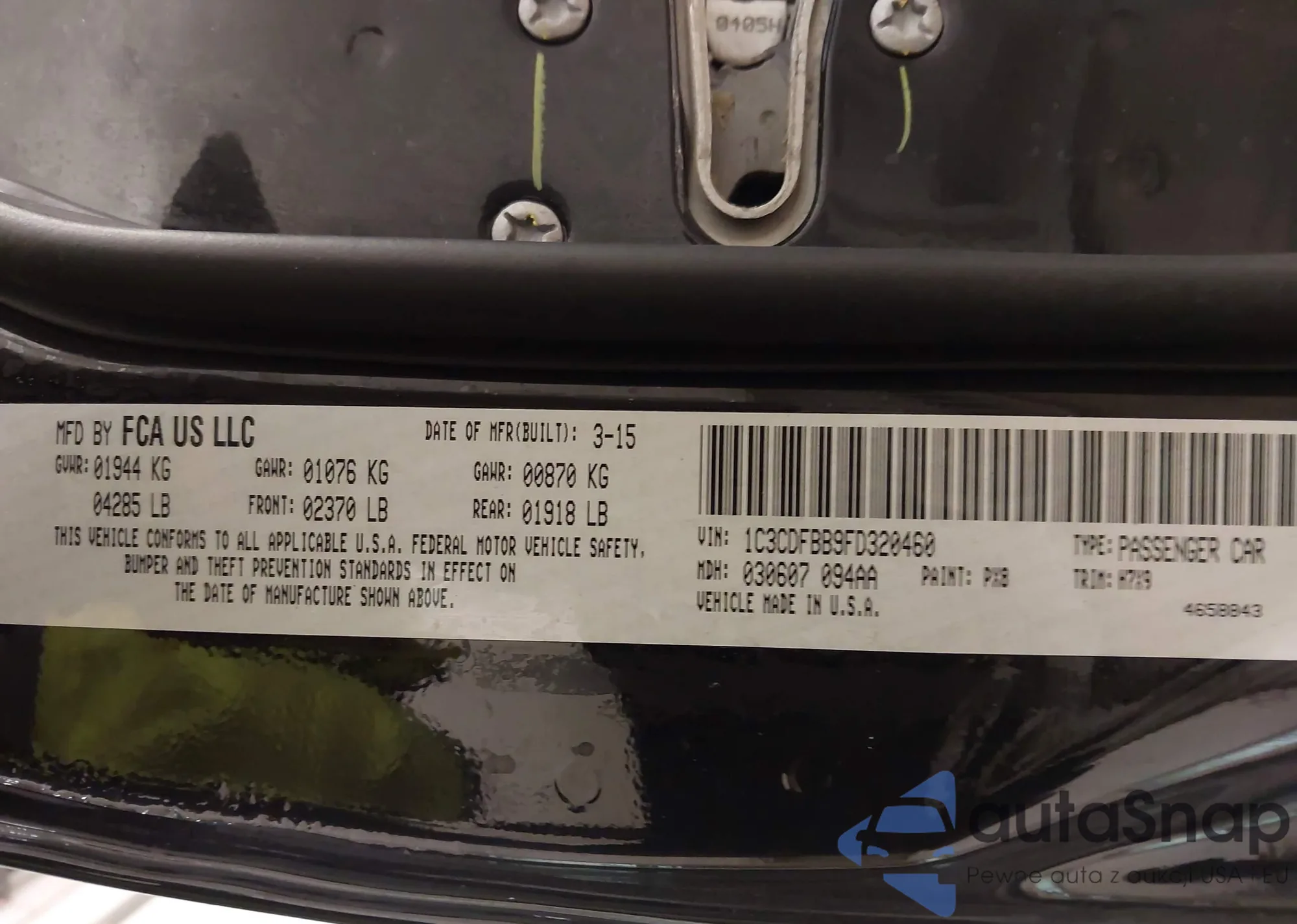 • VIN 1C3CDFBA4DD336120