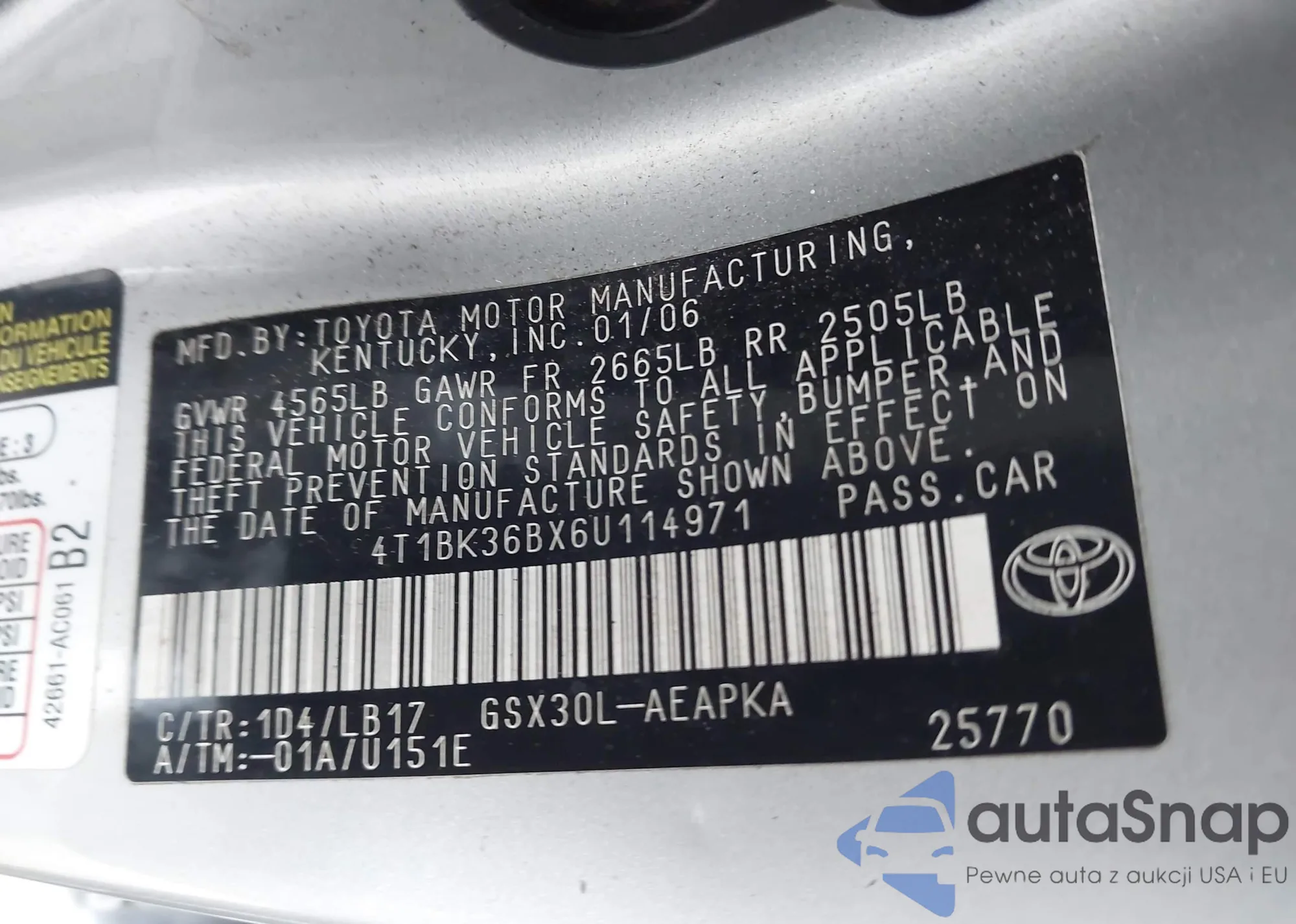 • VIN 4T1BK36BX6U114971