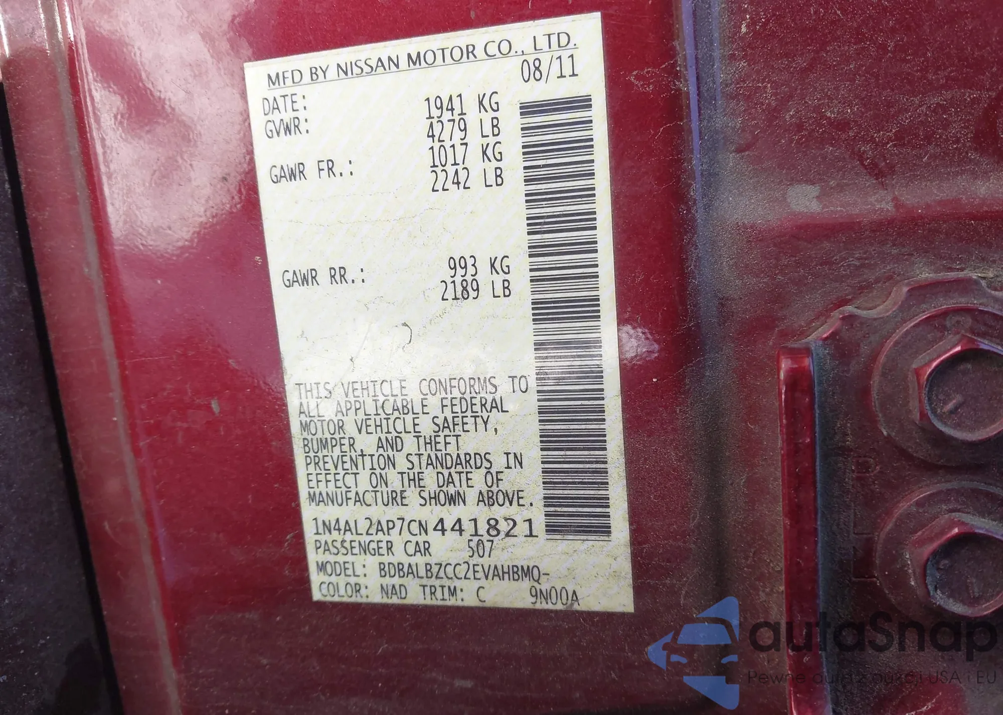 • VIN 1N4AL2AP7CN441821