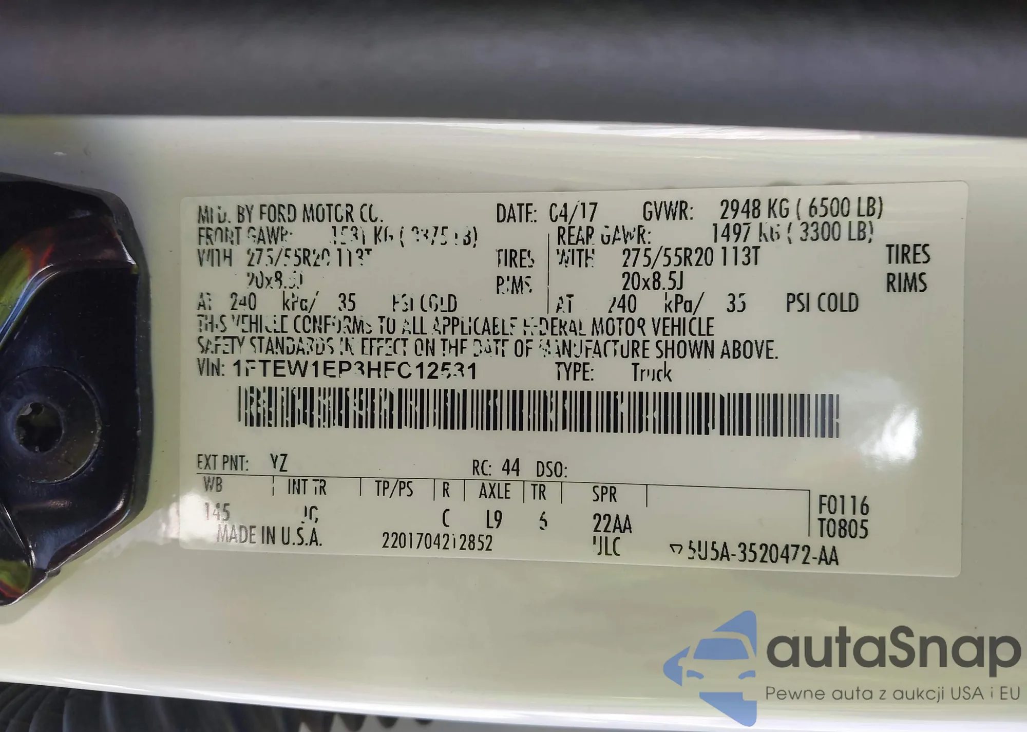 LOT: 43857718 VIN: 1FTEW1EP3HFC12531