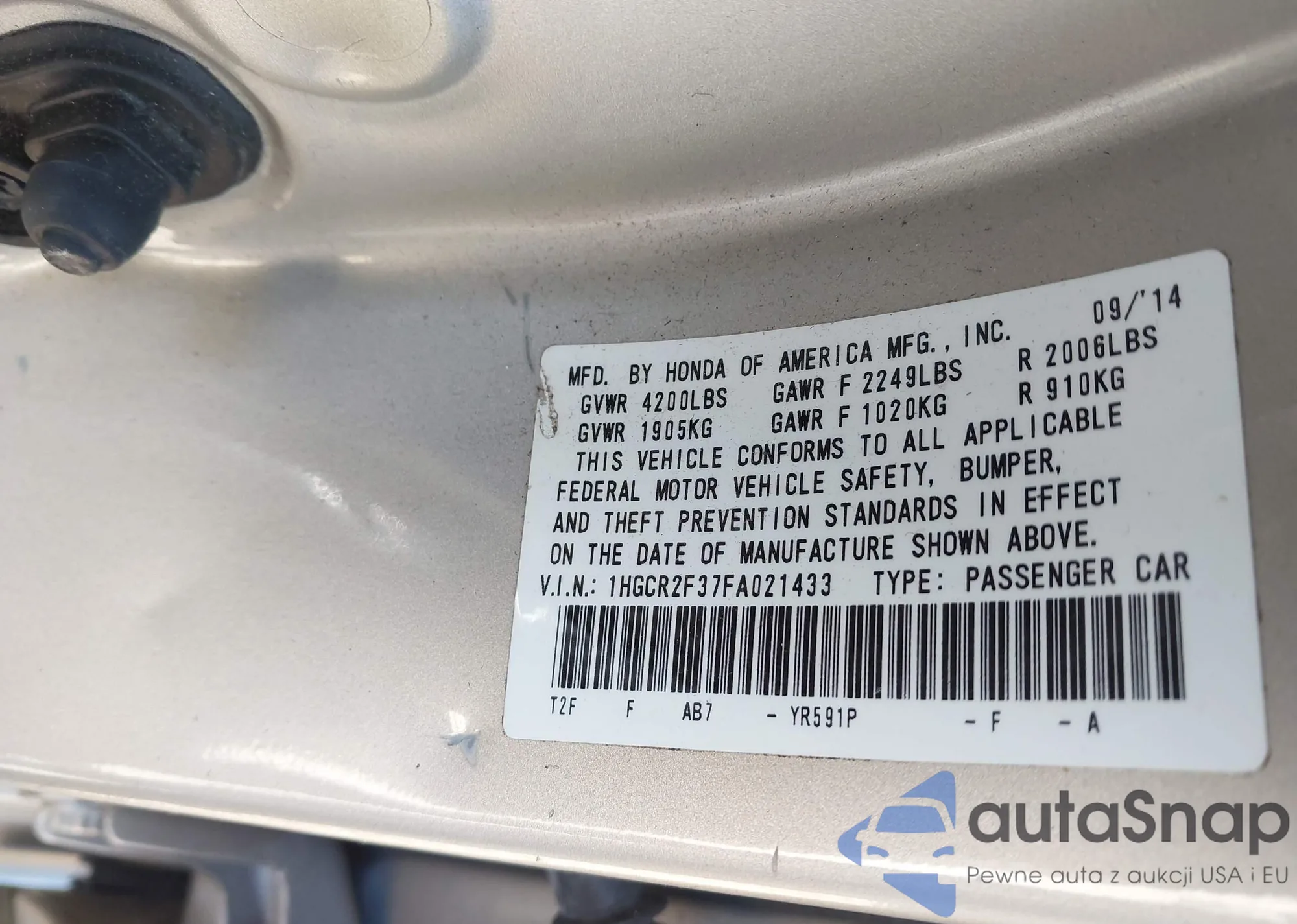 • VIN 1HGCR2F37FA021433