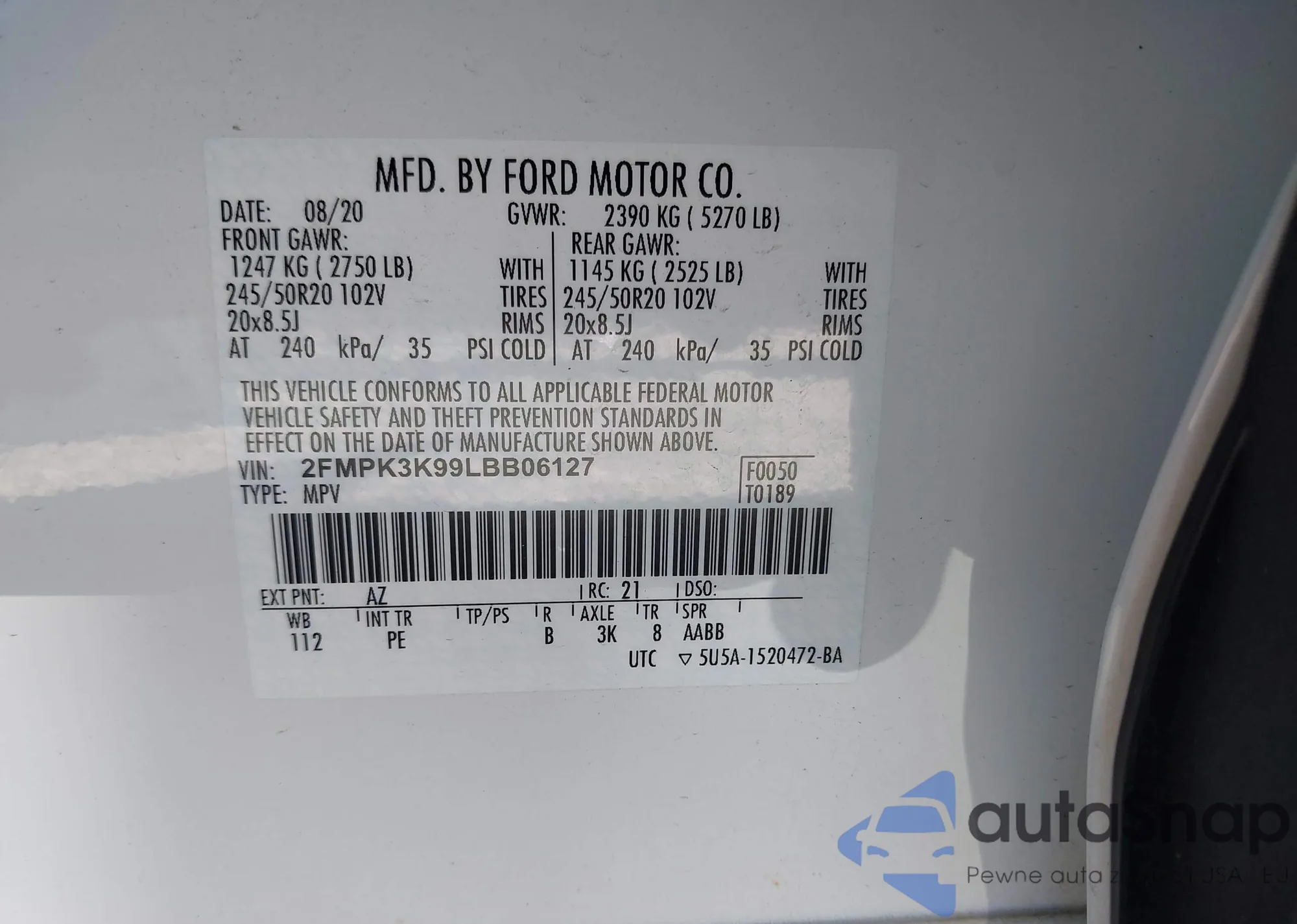• VIN 2FMPK3K99LBB06127