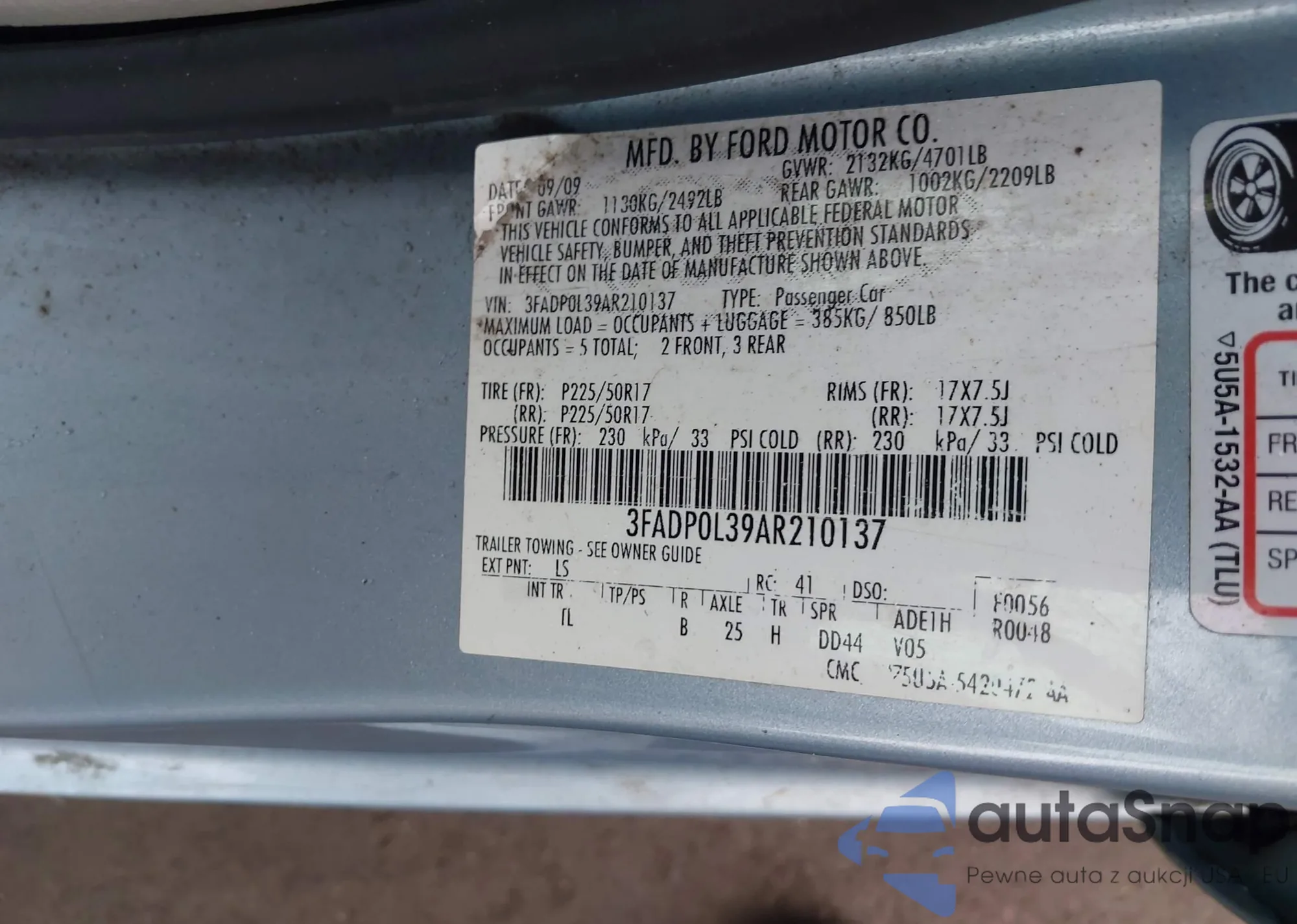 • VIN 3FADP0L39AR210137
