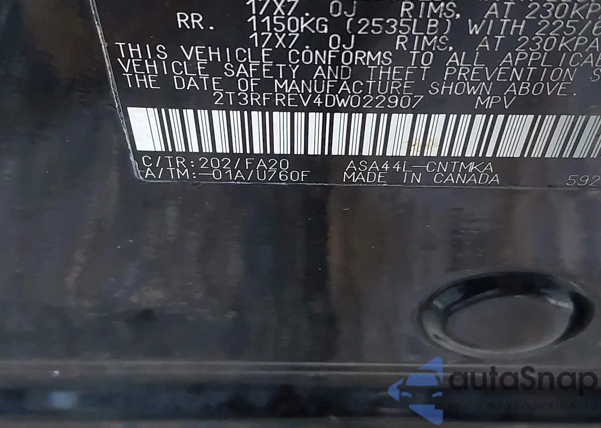 • VIN 2T3RFREV4DW022907