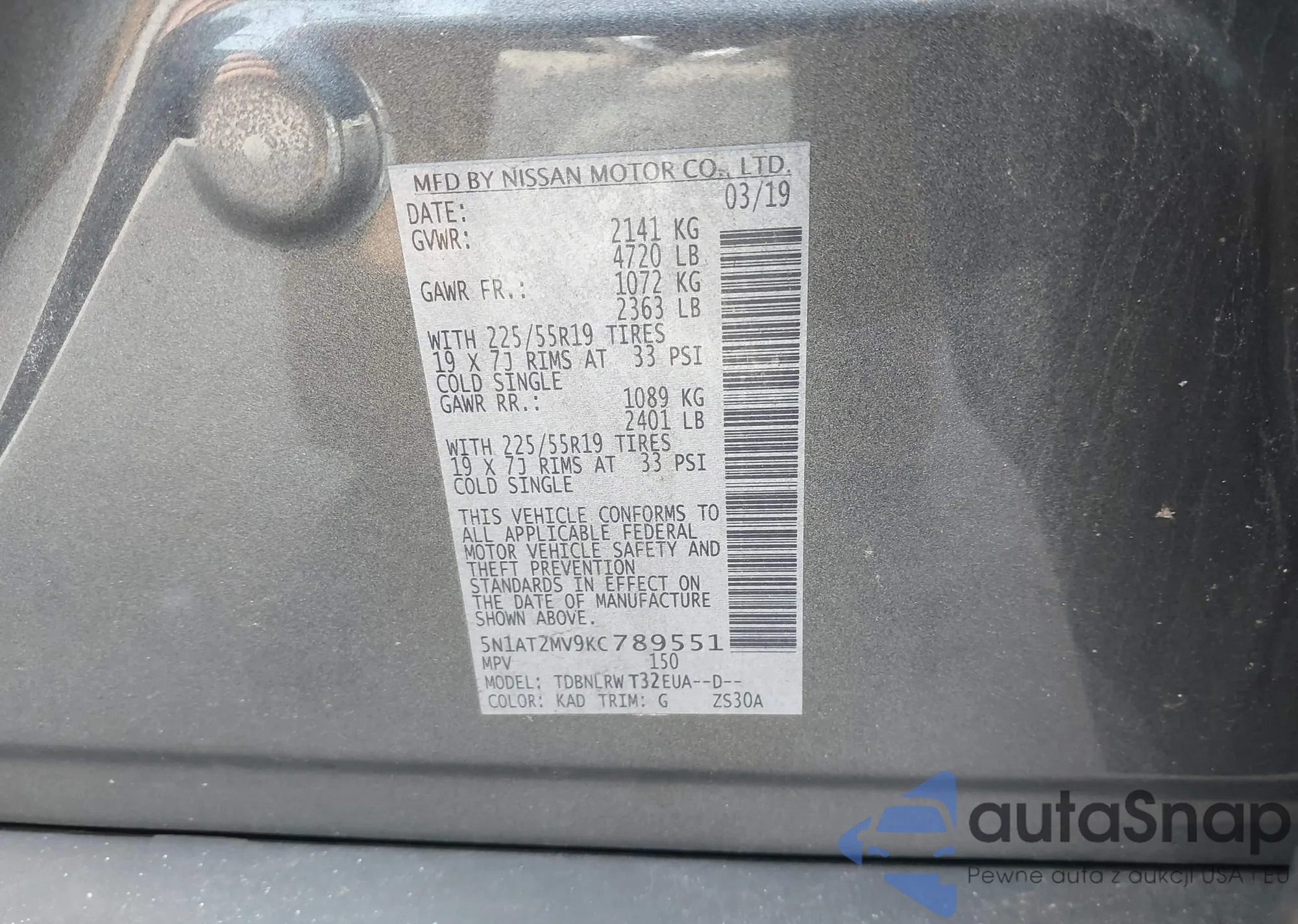 LOT: 43660818 VIN: 5N1AT2MV9KC789551