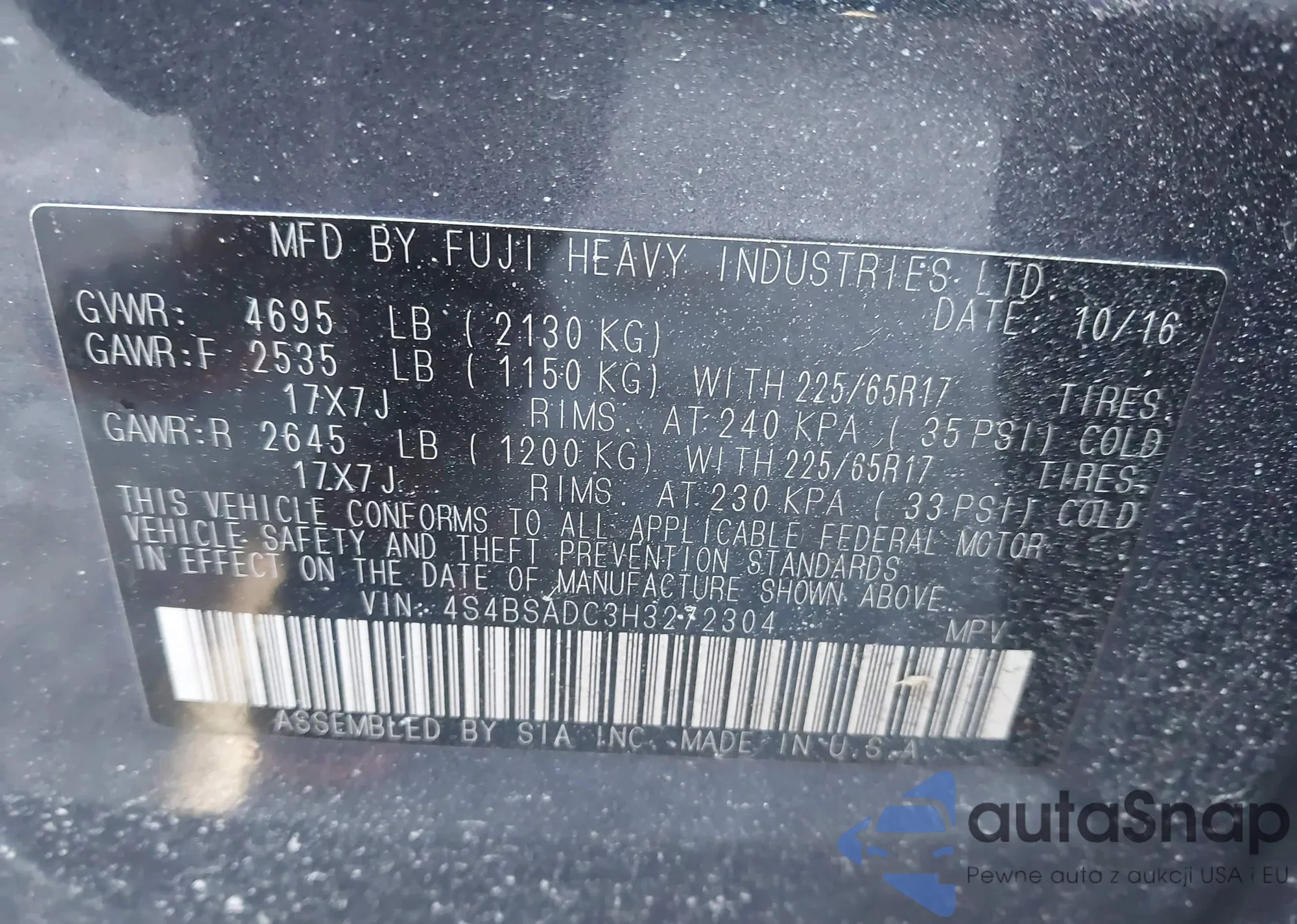 LOT: 43849692 VIN: 4S4BSADC3H3272304