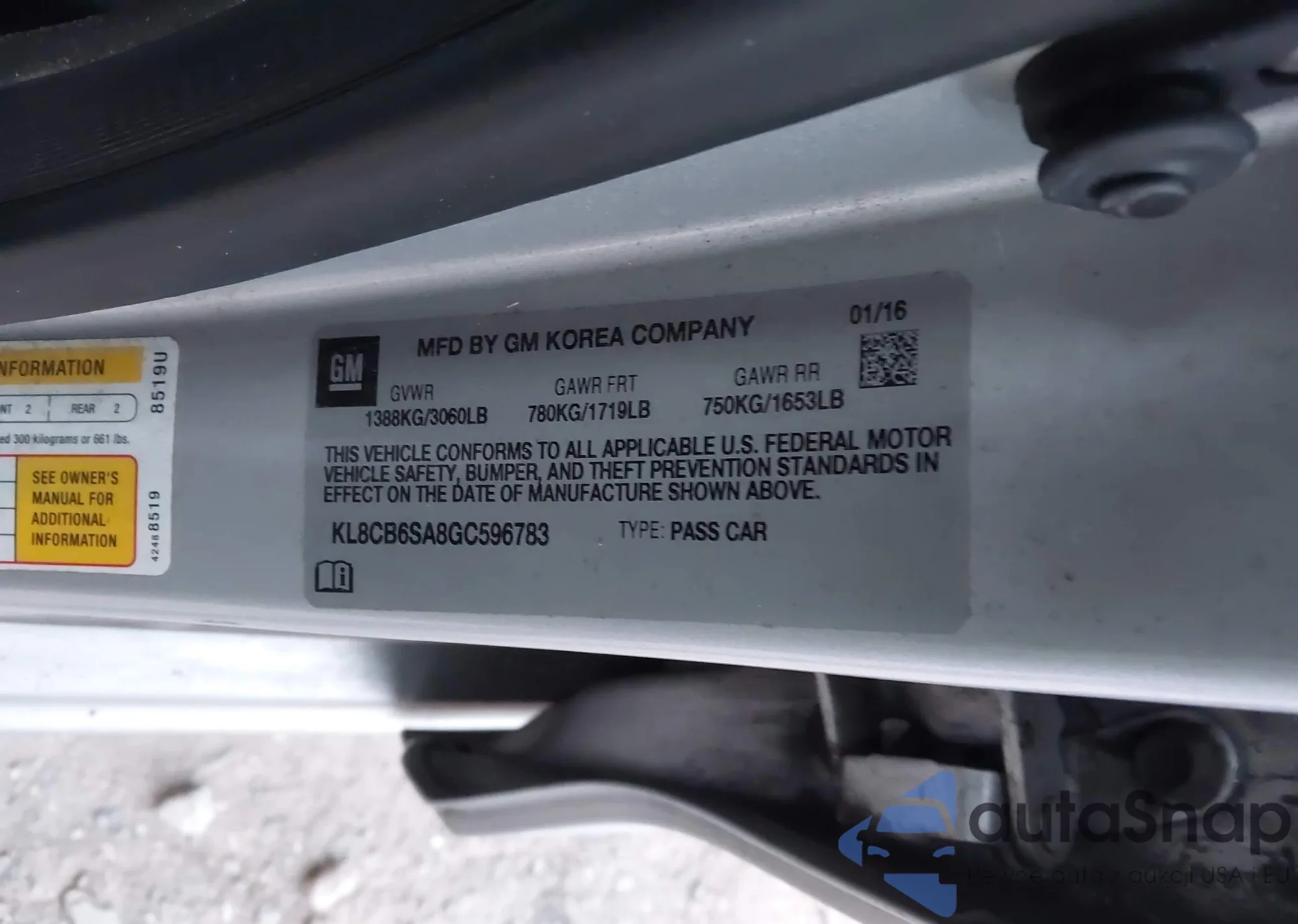 • VIN KL8CB6SA8GC596783