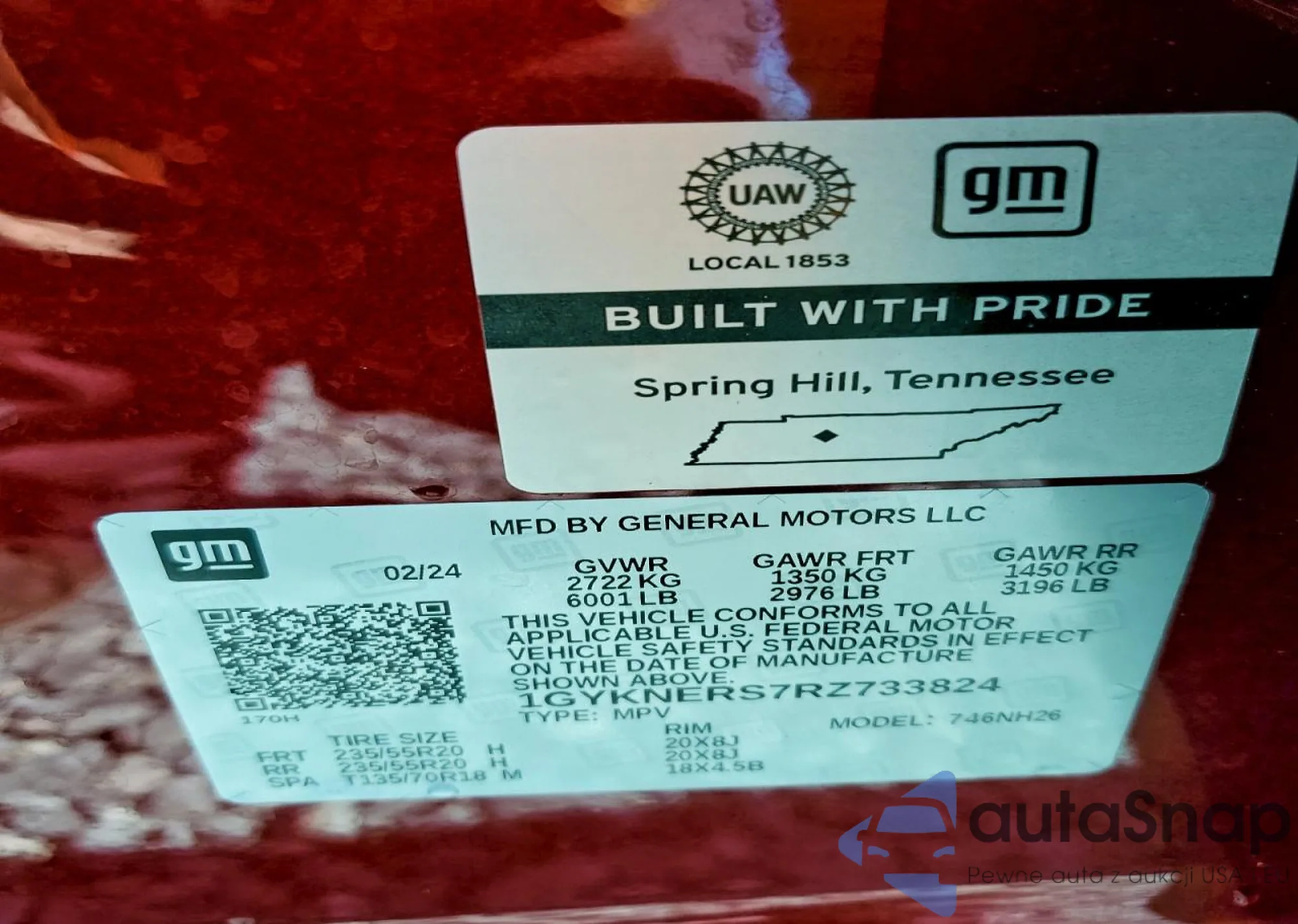 • VIN 1GYKNERS7RZ733824