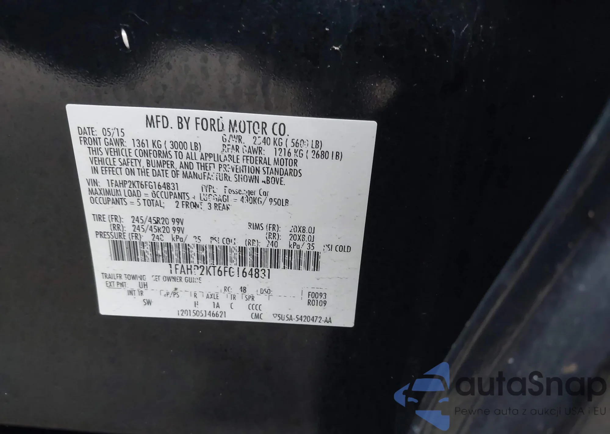 • VIN 1FAHP2KT6FG164831