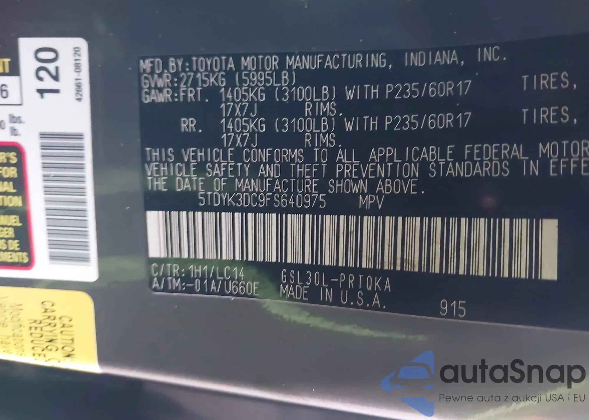 • VIN 5TDYK3DC9FS640975