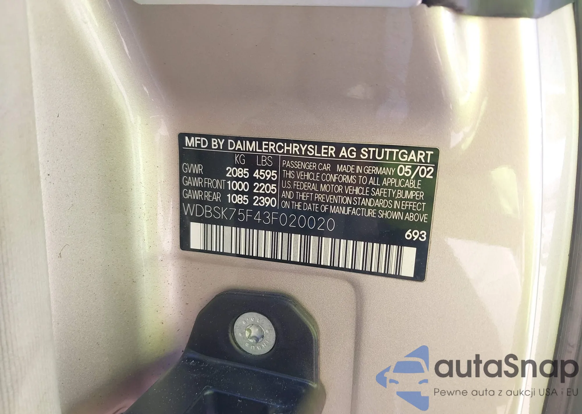 • VIN WDBSK75F43F020020