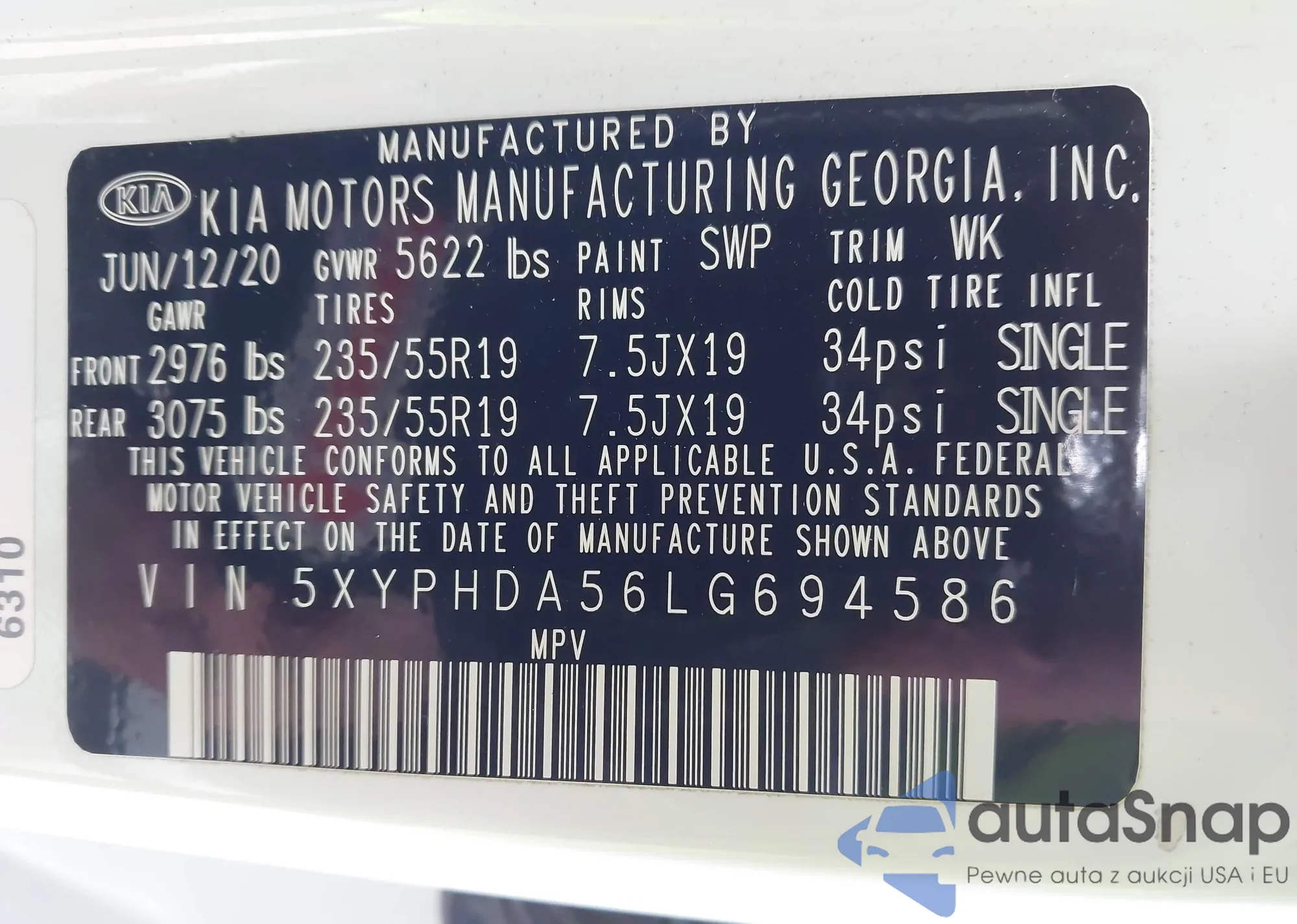 • VIN 5XYPHDA56LG694586