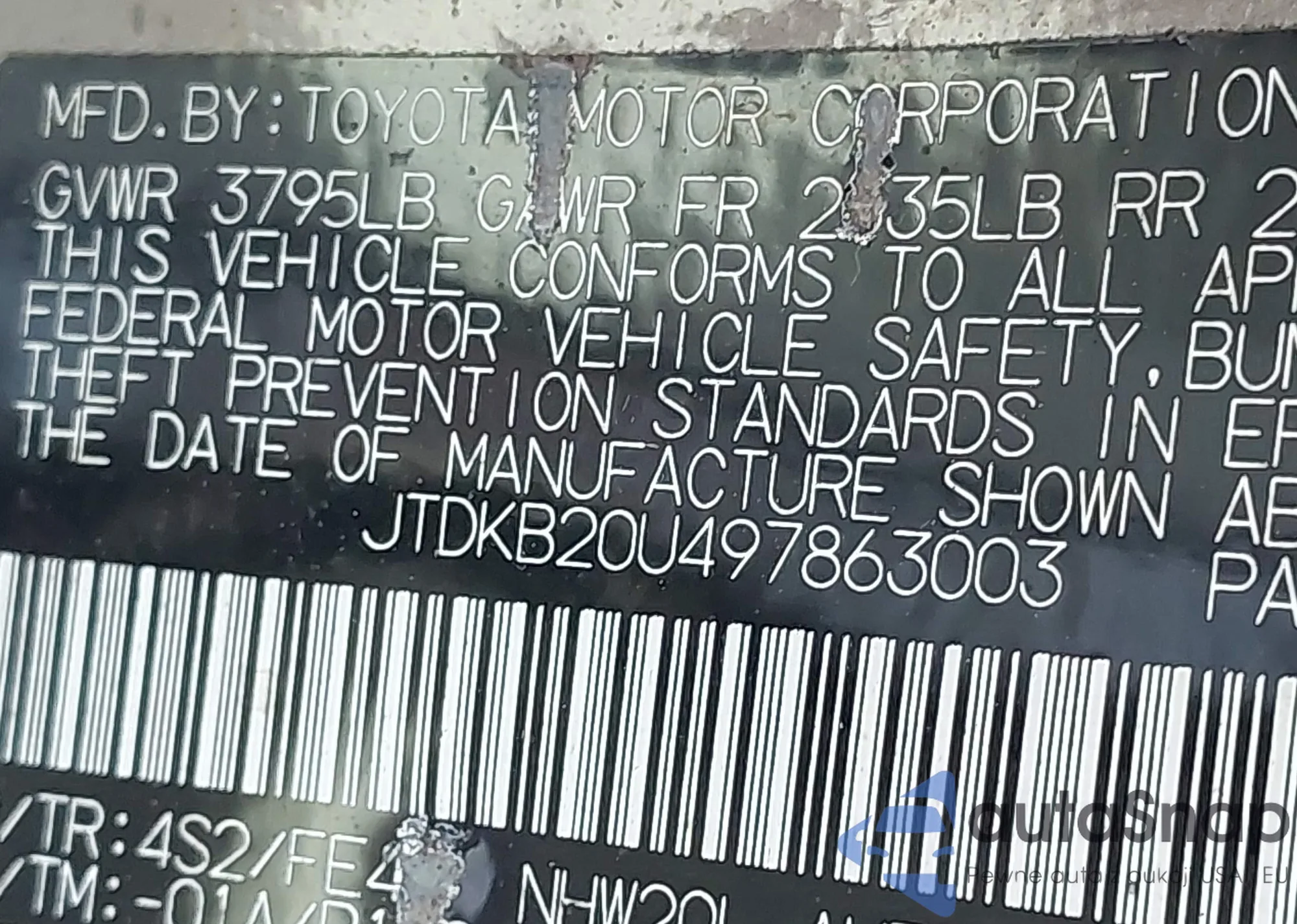 LOT: 43891208 VIN: JTDKB20U497863003