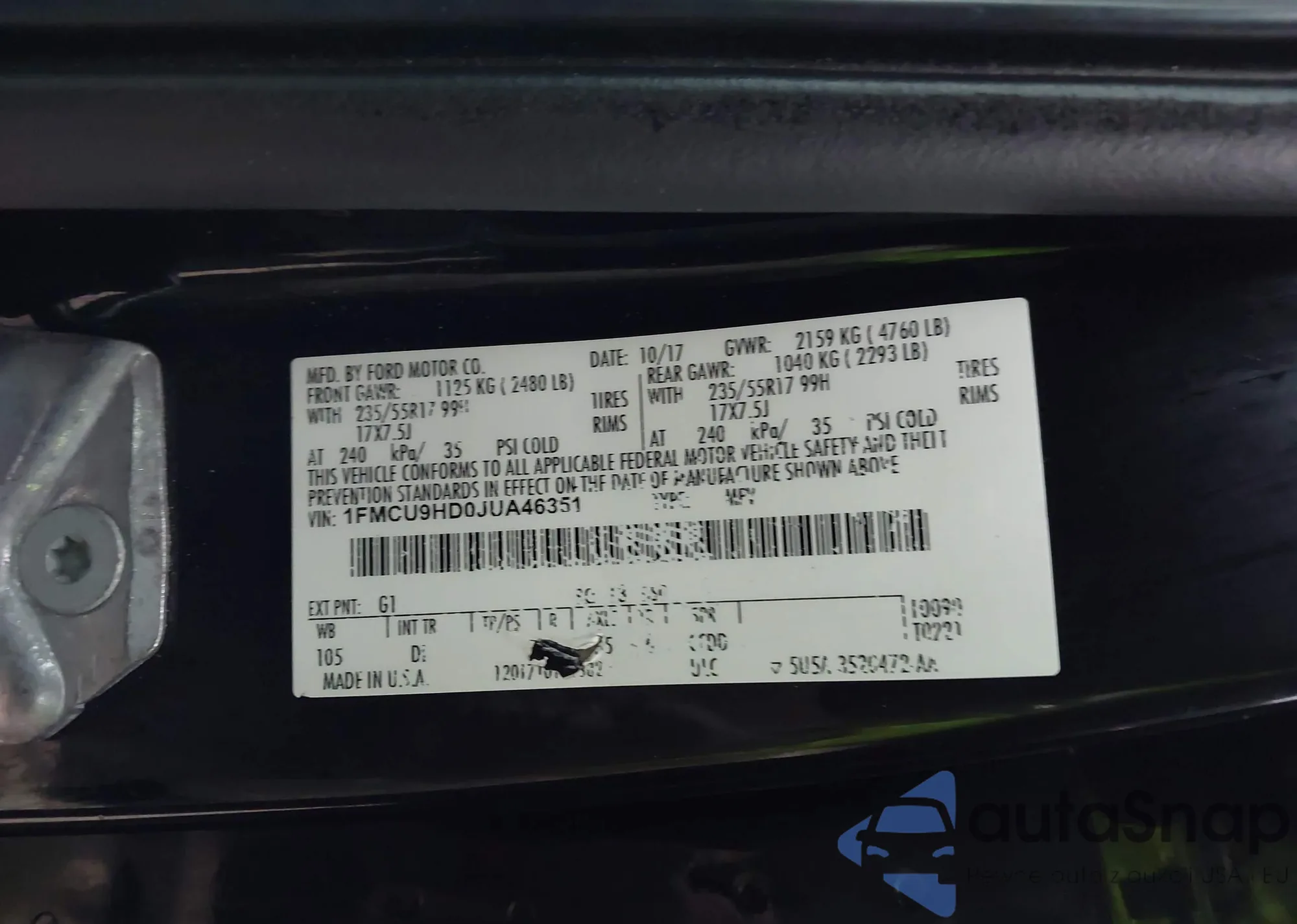 LOT: 43814316 VIN: 1FMCU9HD0JUA46351