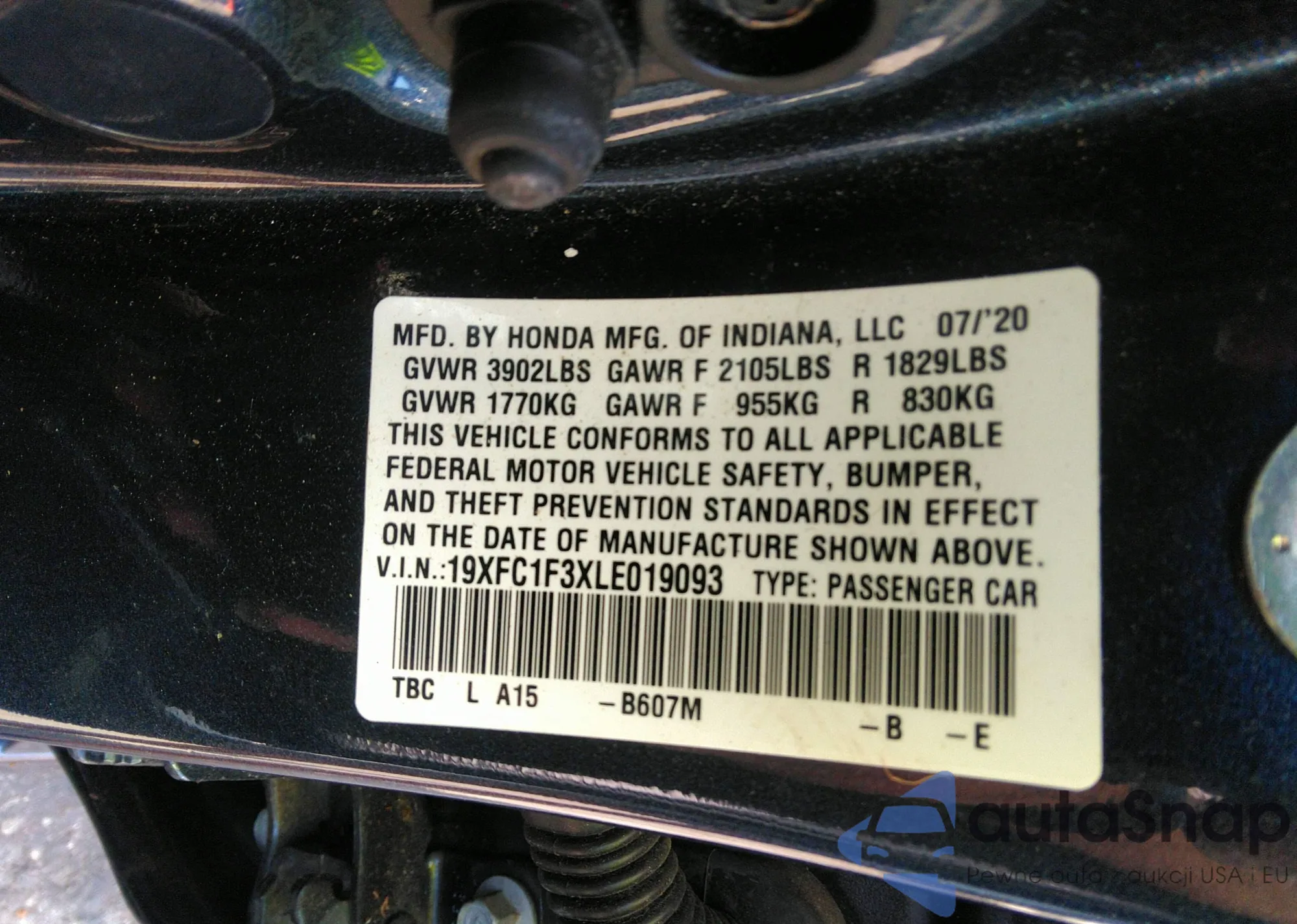 • VIN 19XFC1F3XLE019093