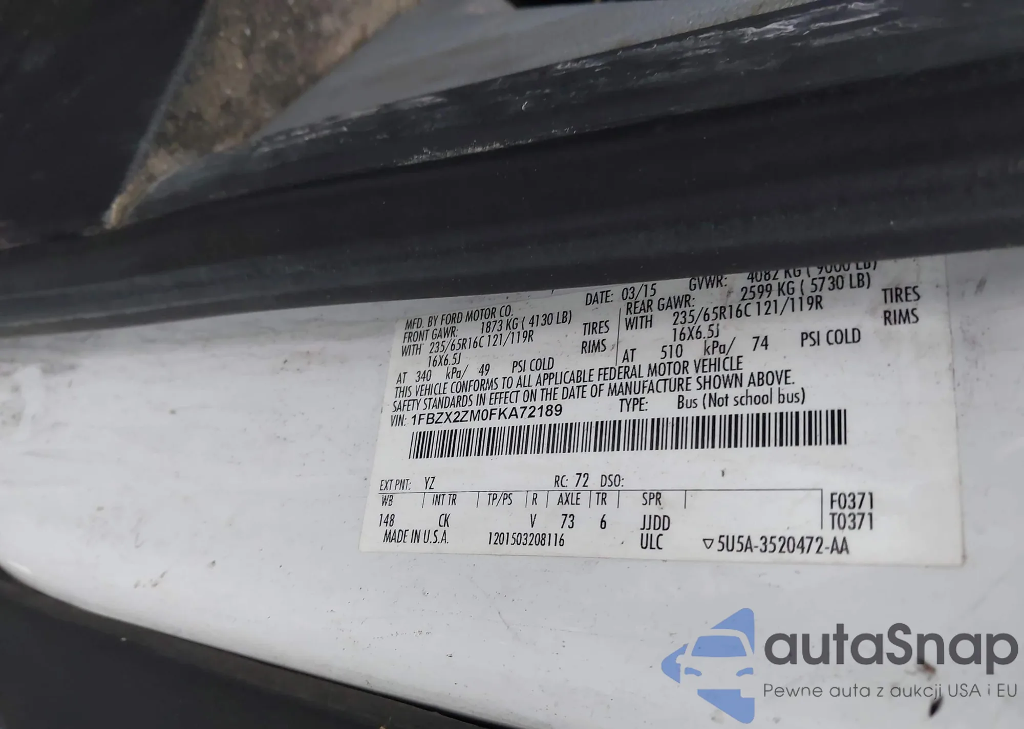 • VIN 1FBZX2ZM0FKA72189