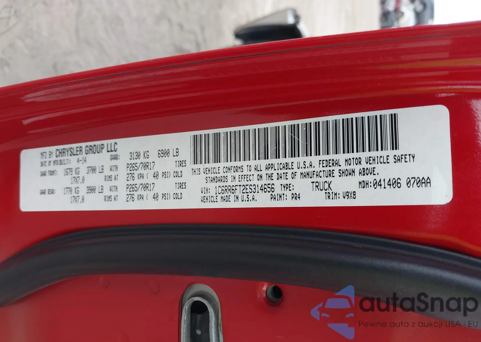 • VIN 1C6RR6FT2ES314656