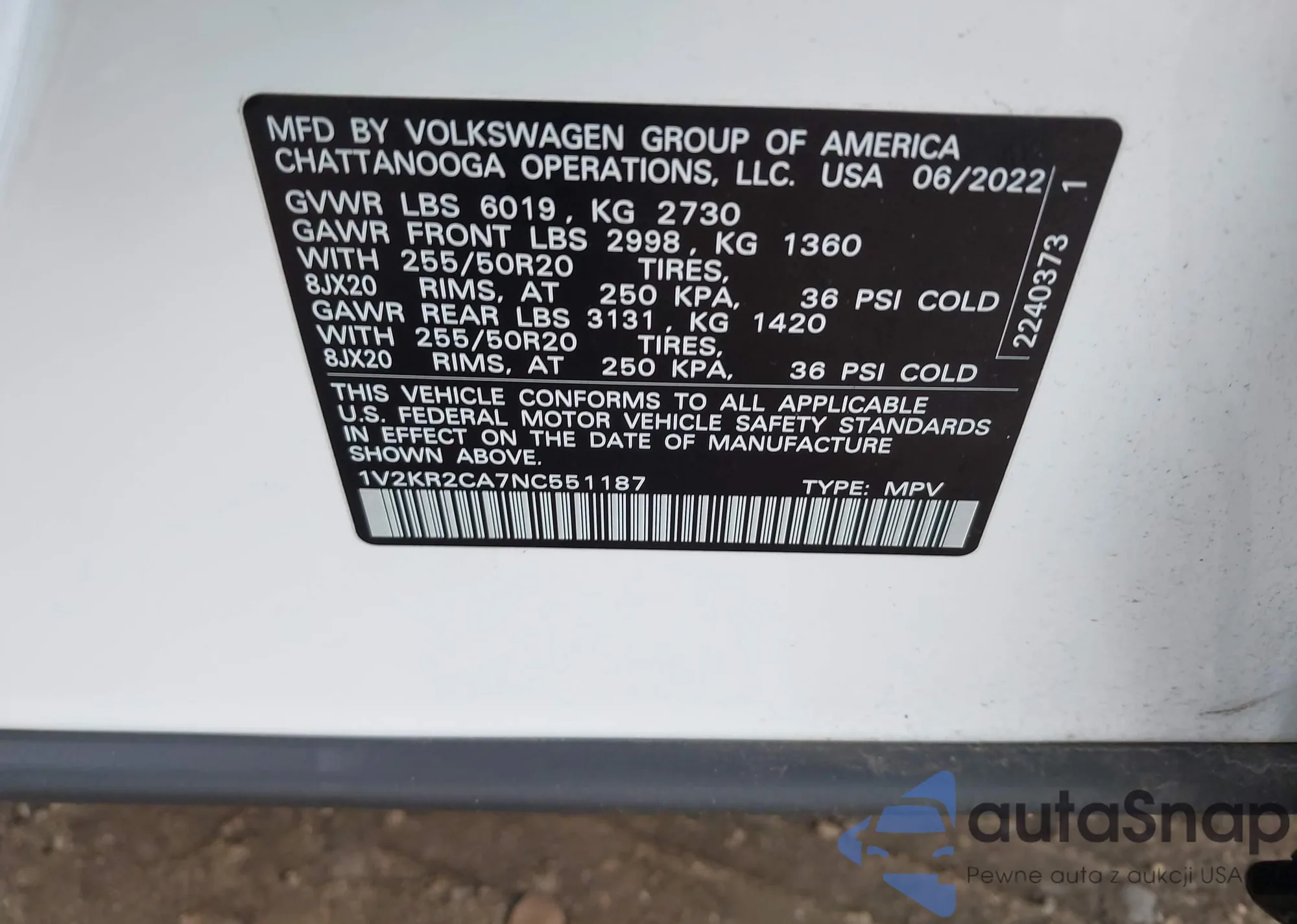 • VIN 1V2KR2CA7NC551187