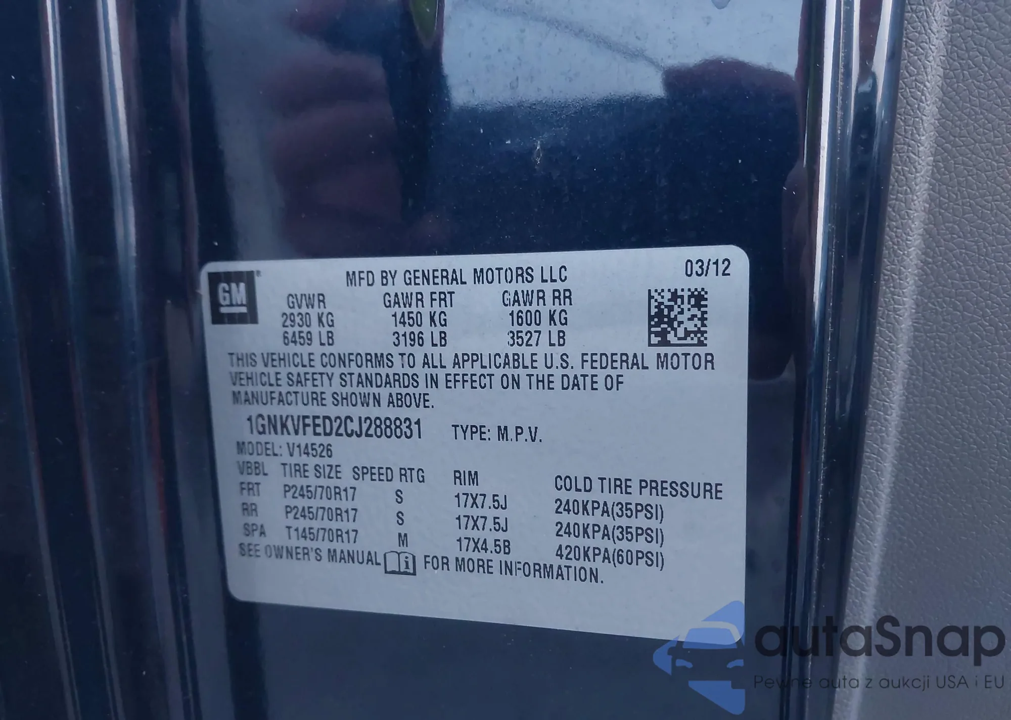 LOT: 43763622 VIN: 1GNKVFED2CJ288831
