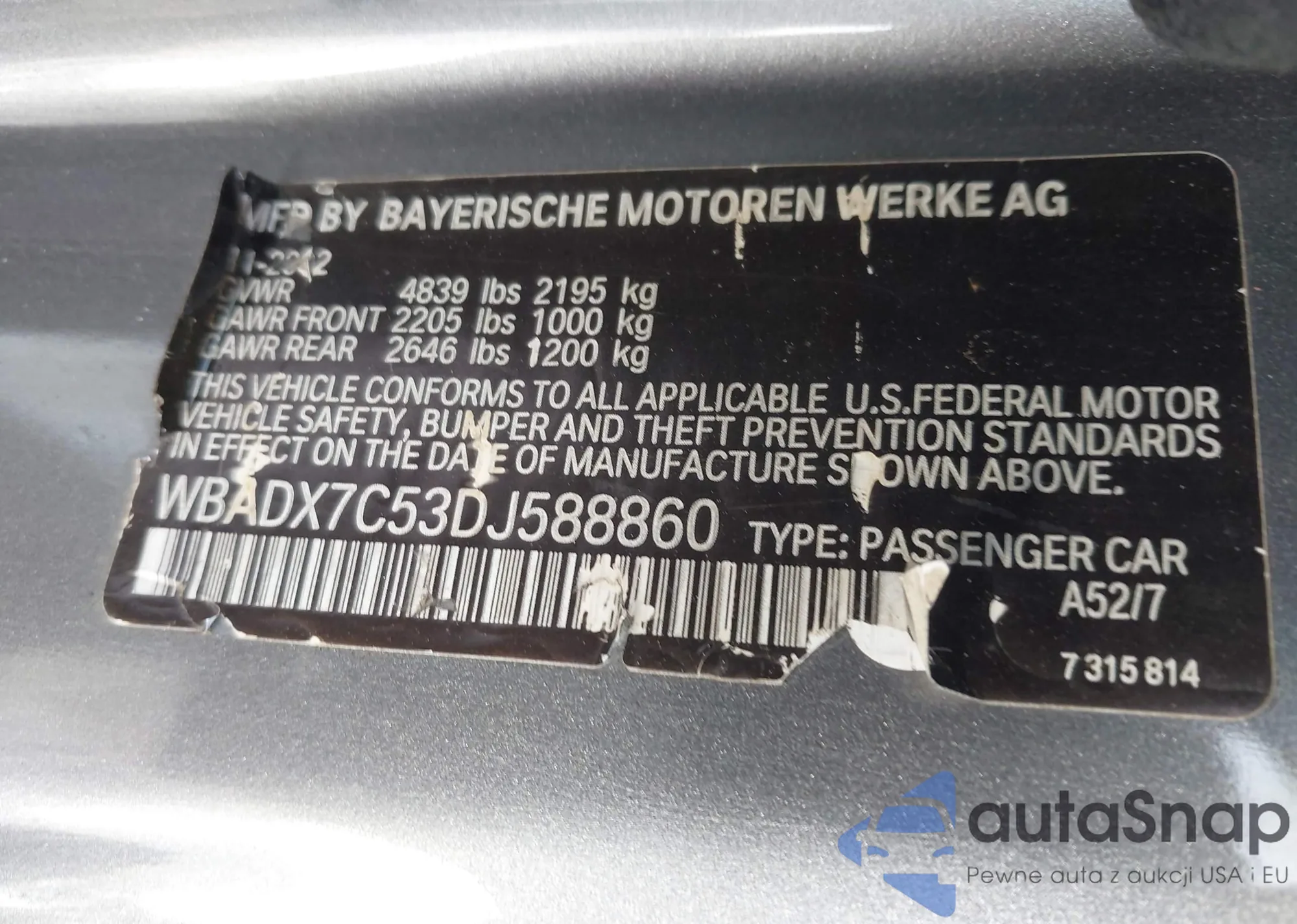 • VIN WBADX7C53DJ588860