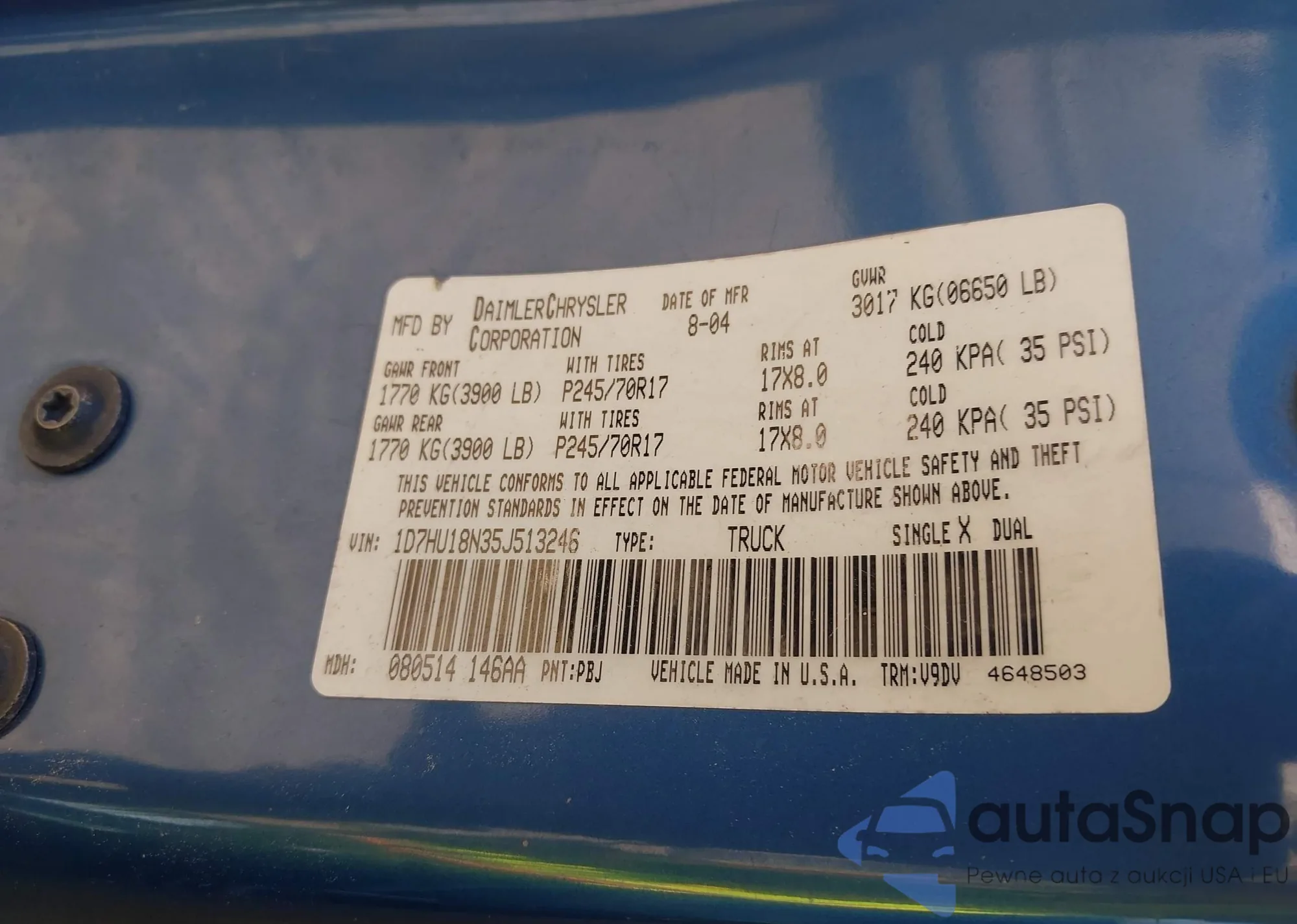 • VIN 1D7HU18N35J513246