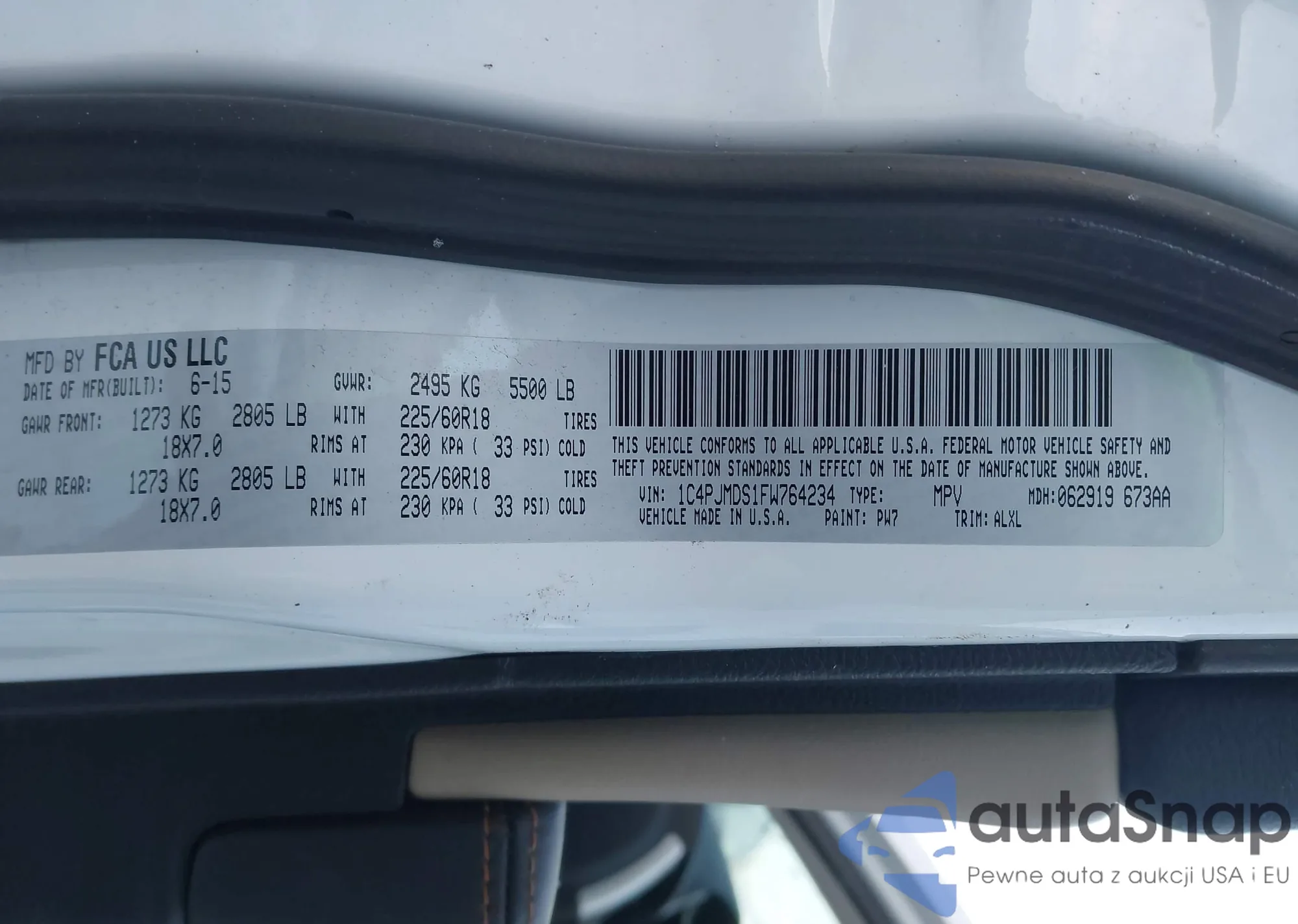 LOT: 43860733 VIN: 1C4PJMDS1FW764234
