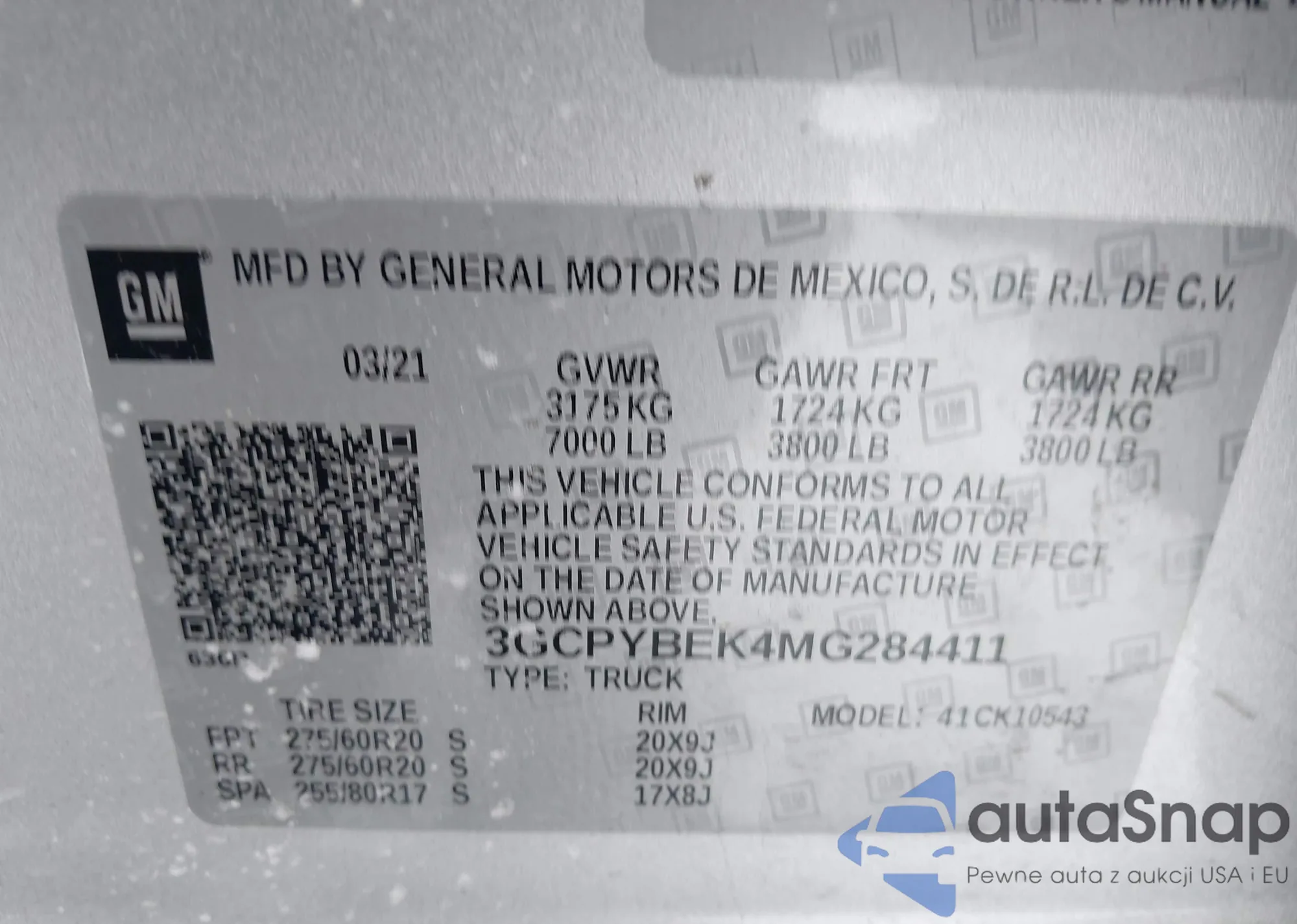 LOT: 43929363 VIN: 3GCPYBEK4MG284411