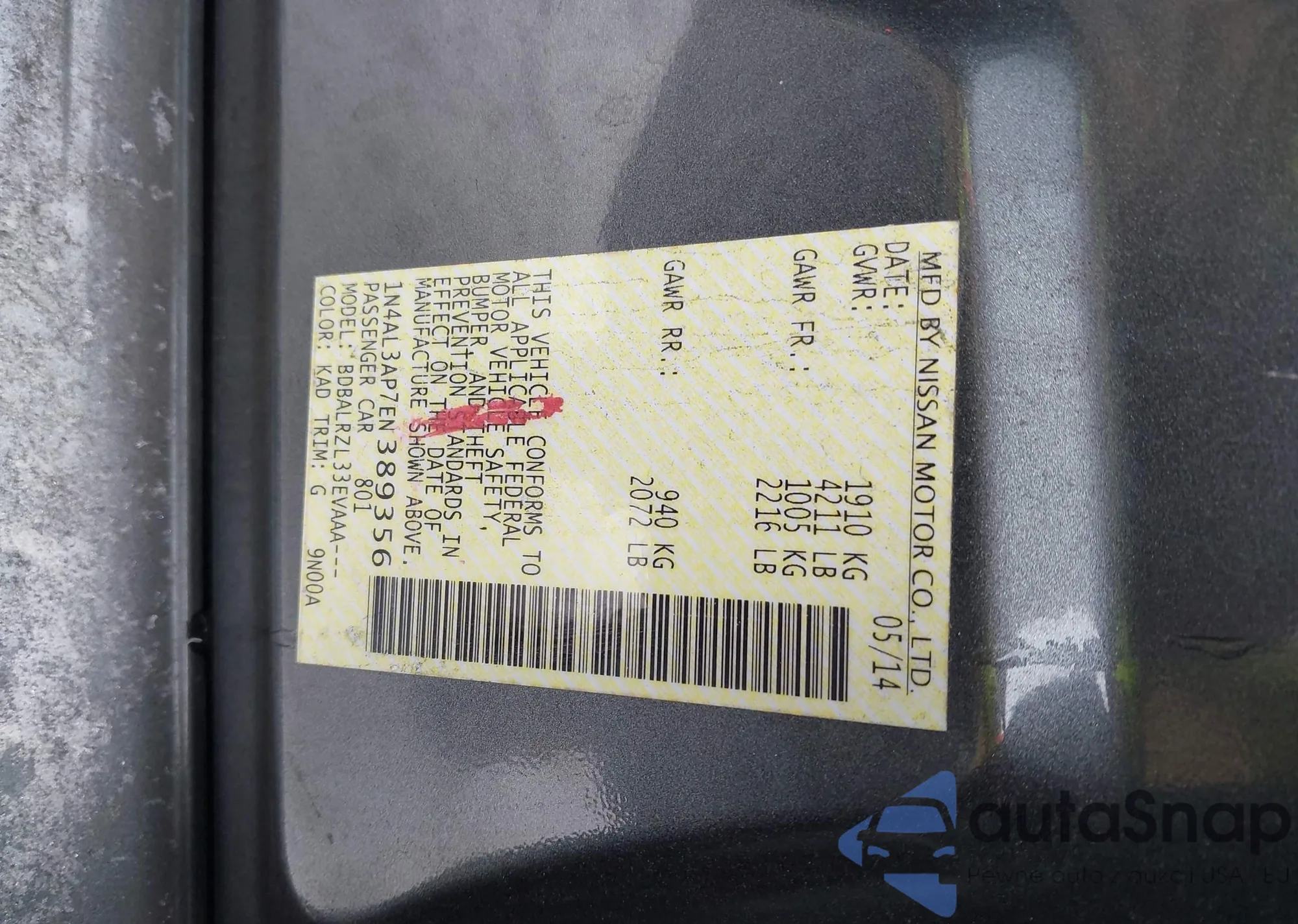 LOT: 44147567 VIN: 5NPEB4AC6EH877599