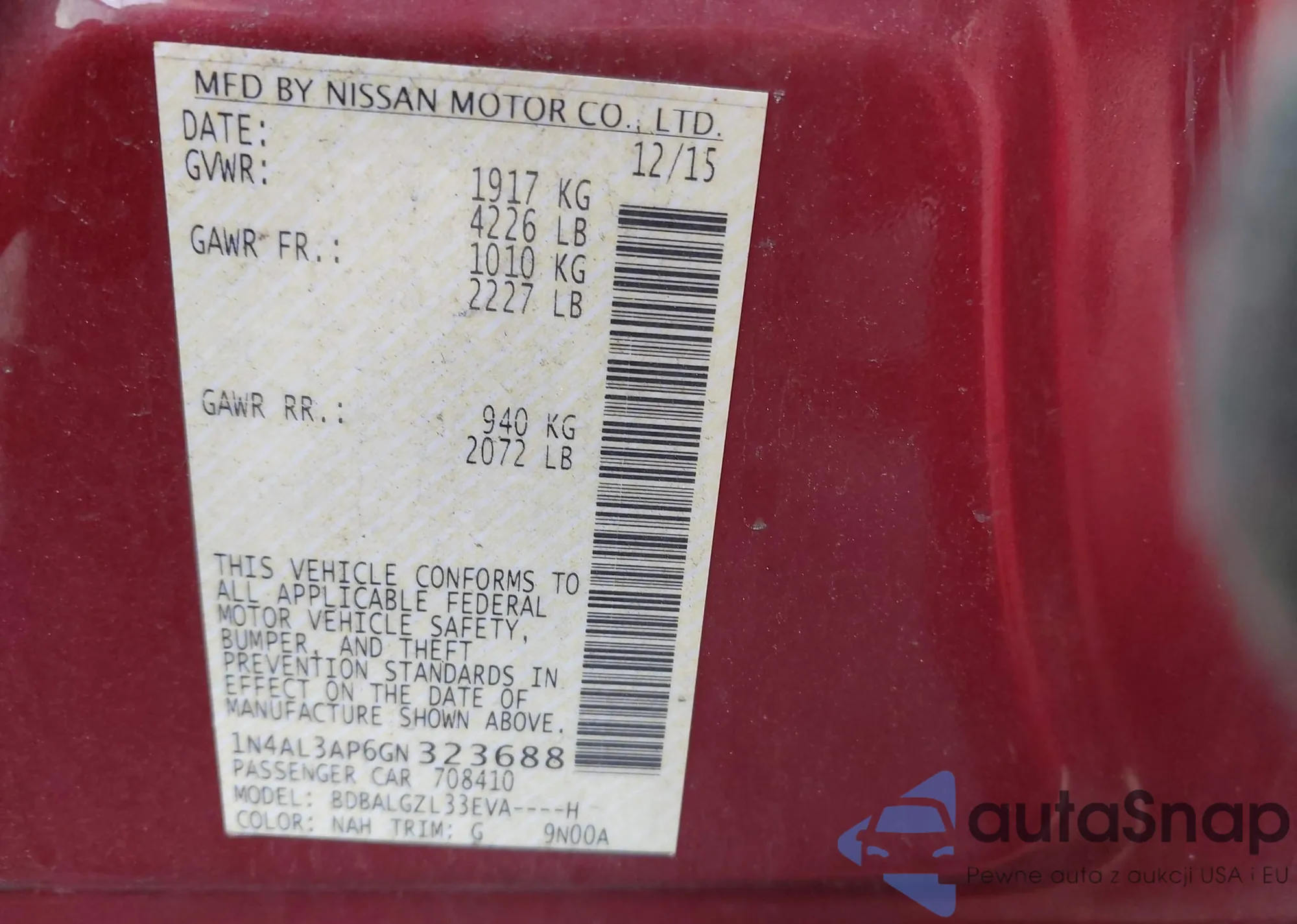 LOT: 43995529 VIN: 1N4AL3AP6GN323688