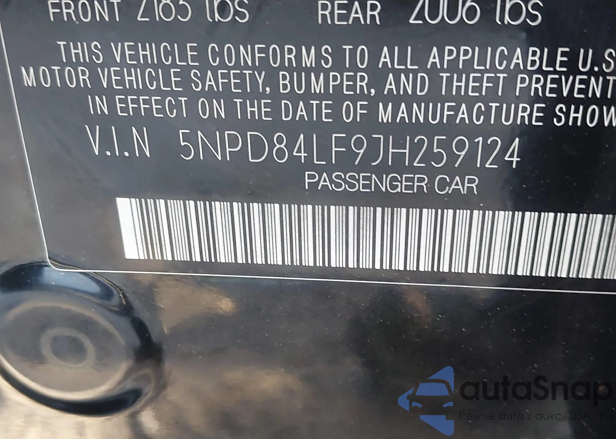 • VIN 5NPD84LF9JH259124