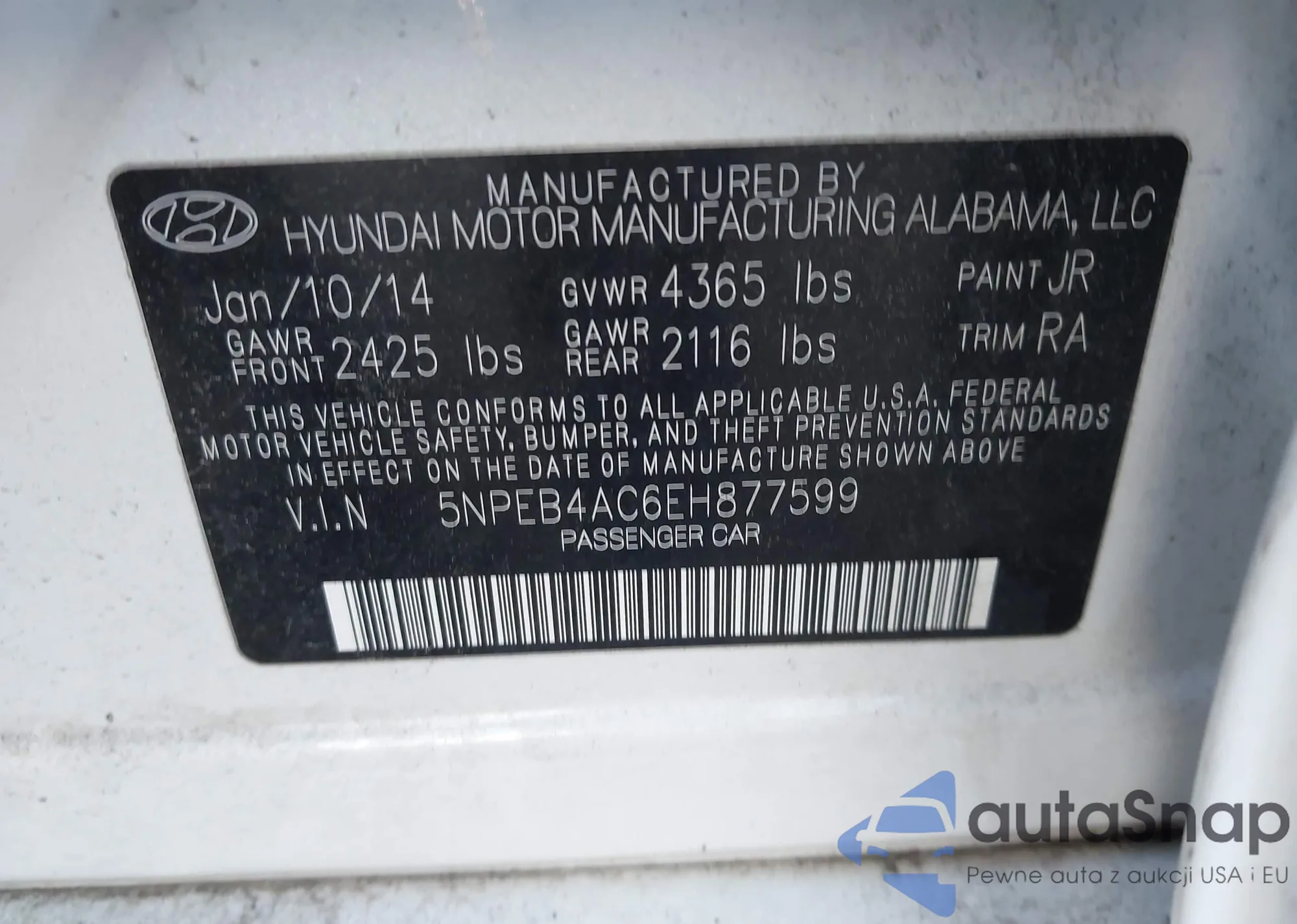 • VIN 5NPEB4AC6EH877599