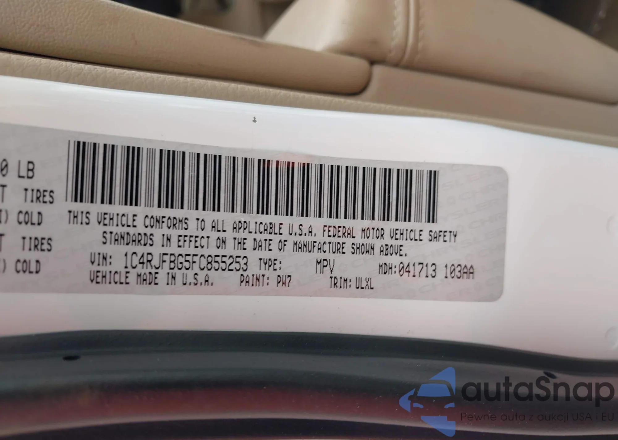 • VIN 1C4RJFBG5FC855253