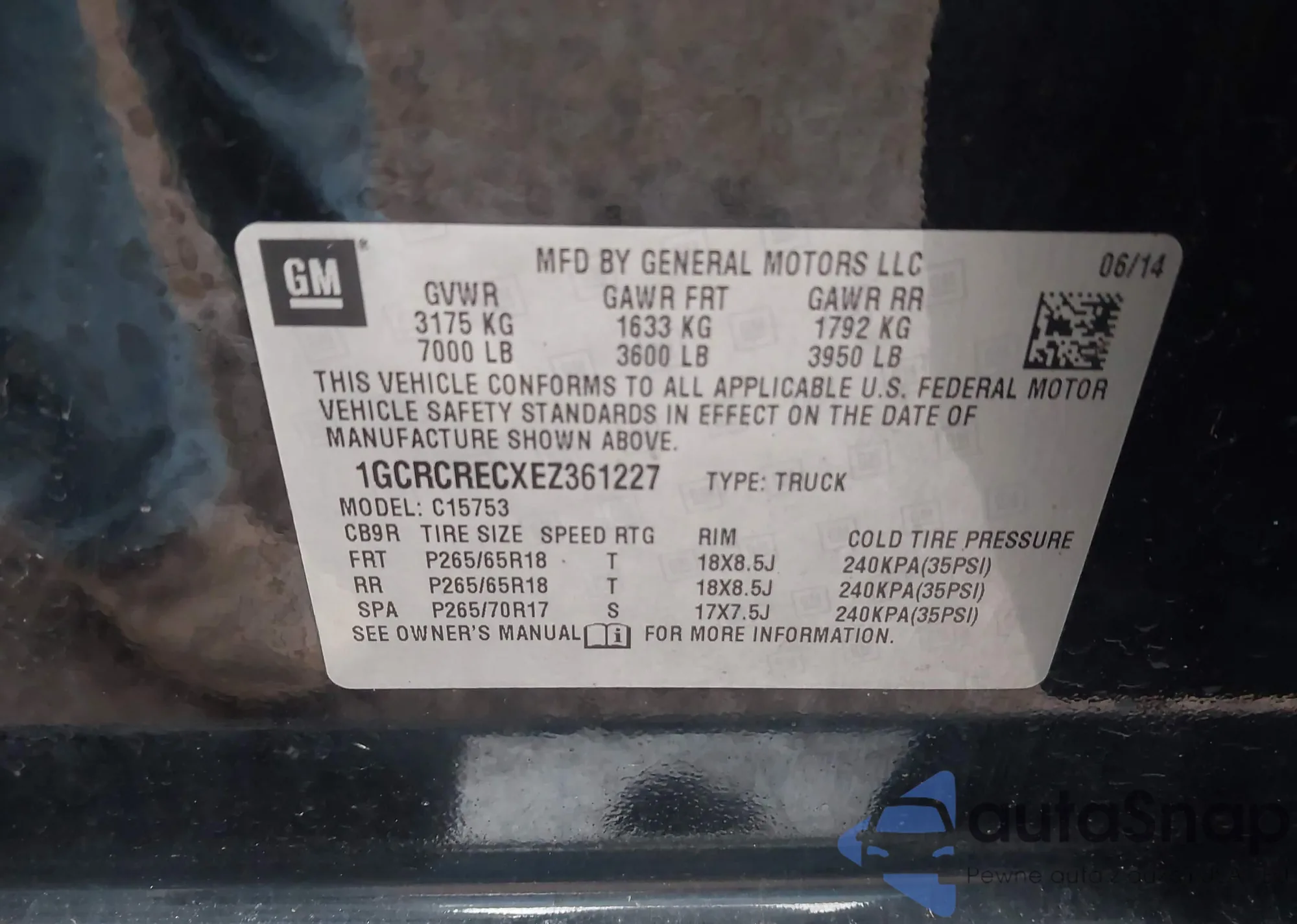 LOT: 43920002 VIN: 1GCRCRECXEZ361227